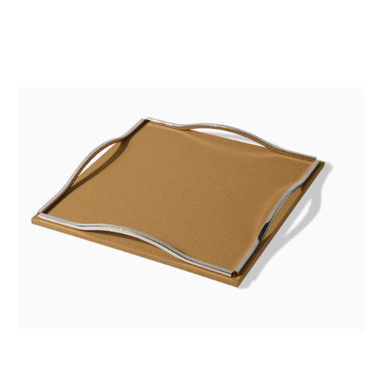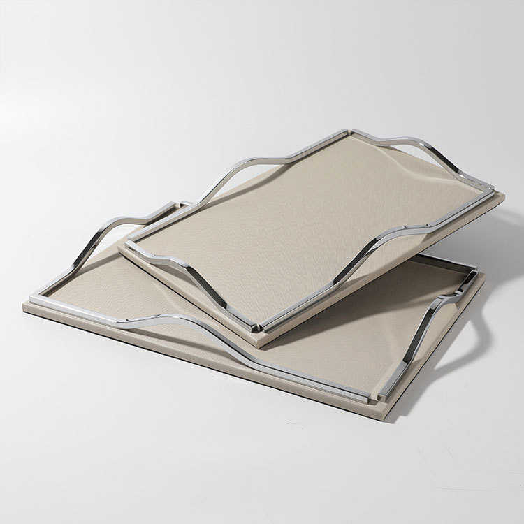 现代轻奢皮革金属托盘摆件酒店样板间客厅茶几餐桌收纳盘浴室香薰