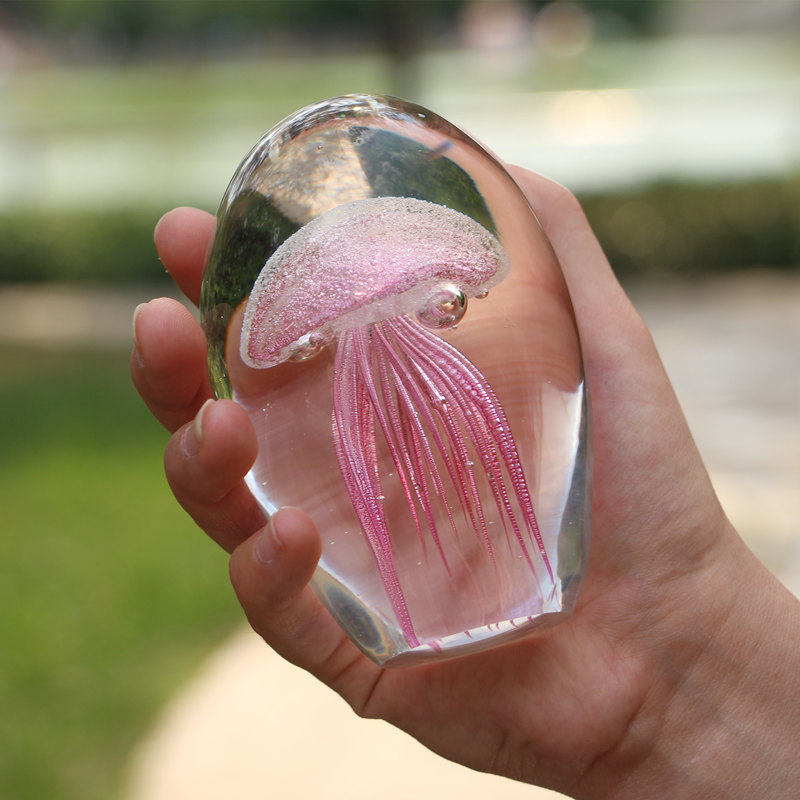 水晶球琉璃发光水母摆件手工艺品海洋动物鱼缸造景生日礼物送女生