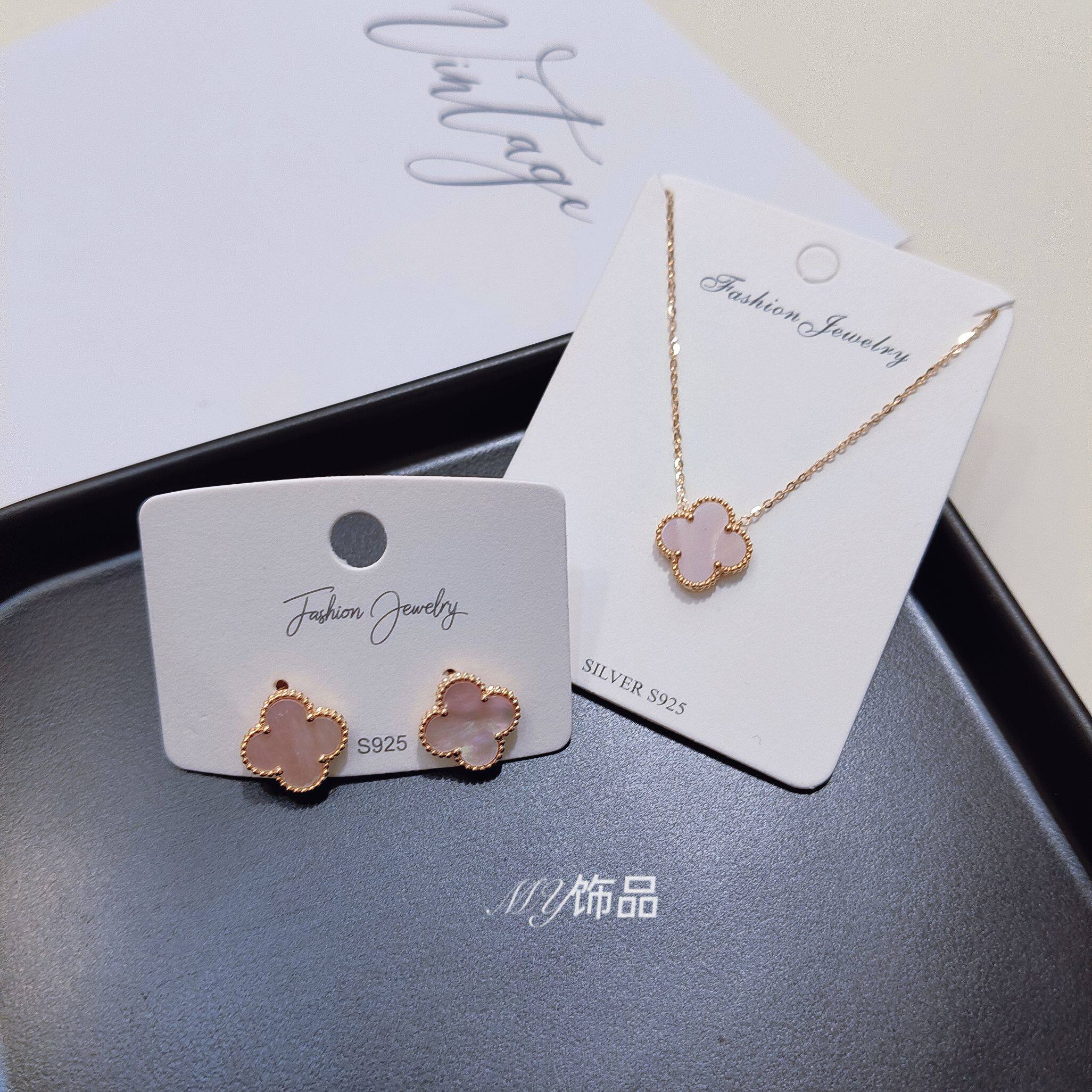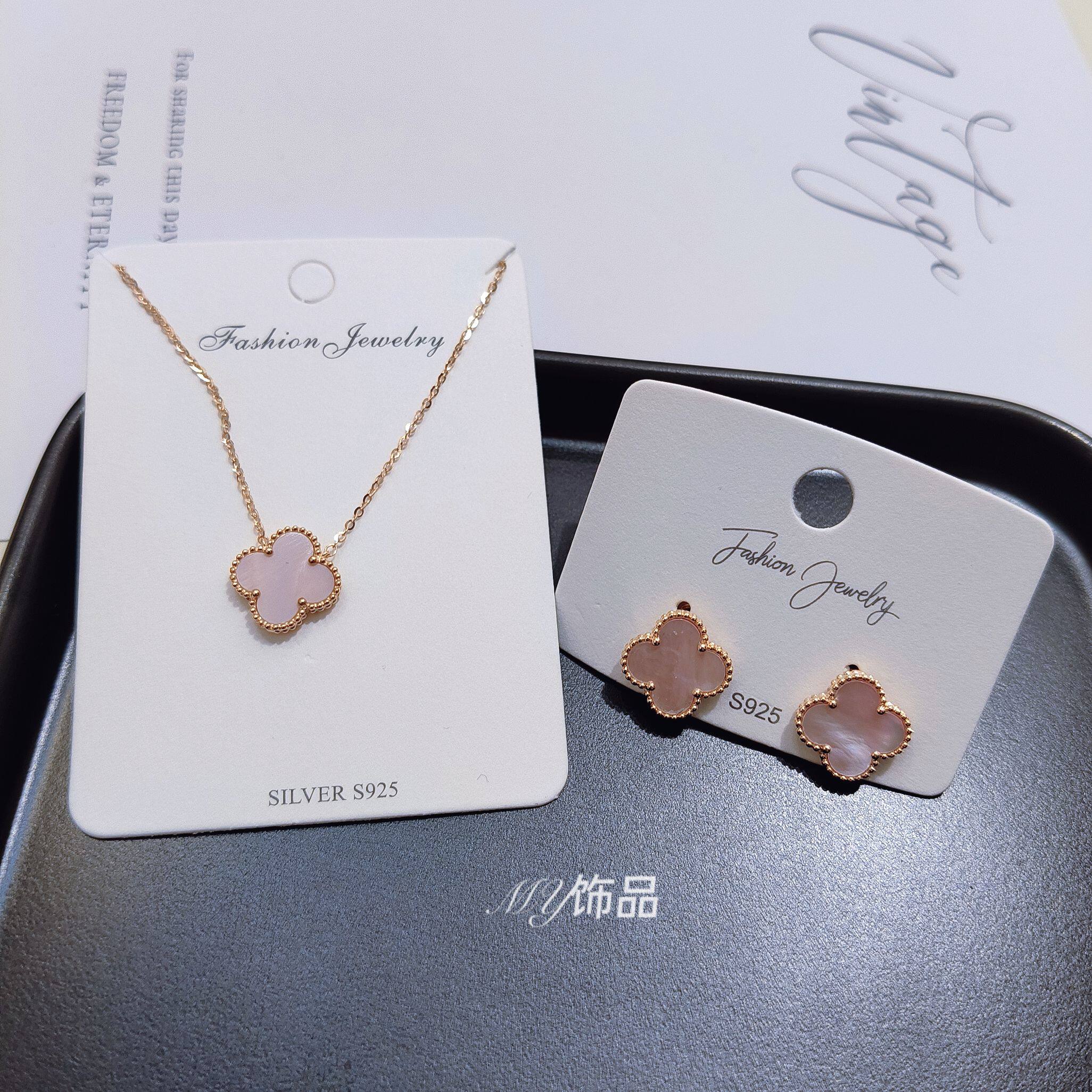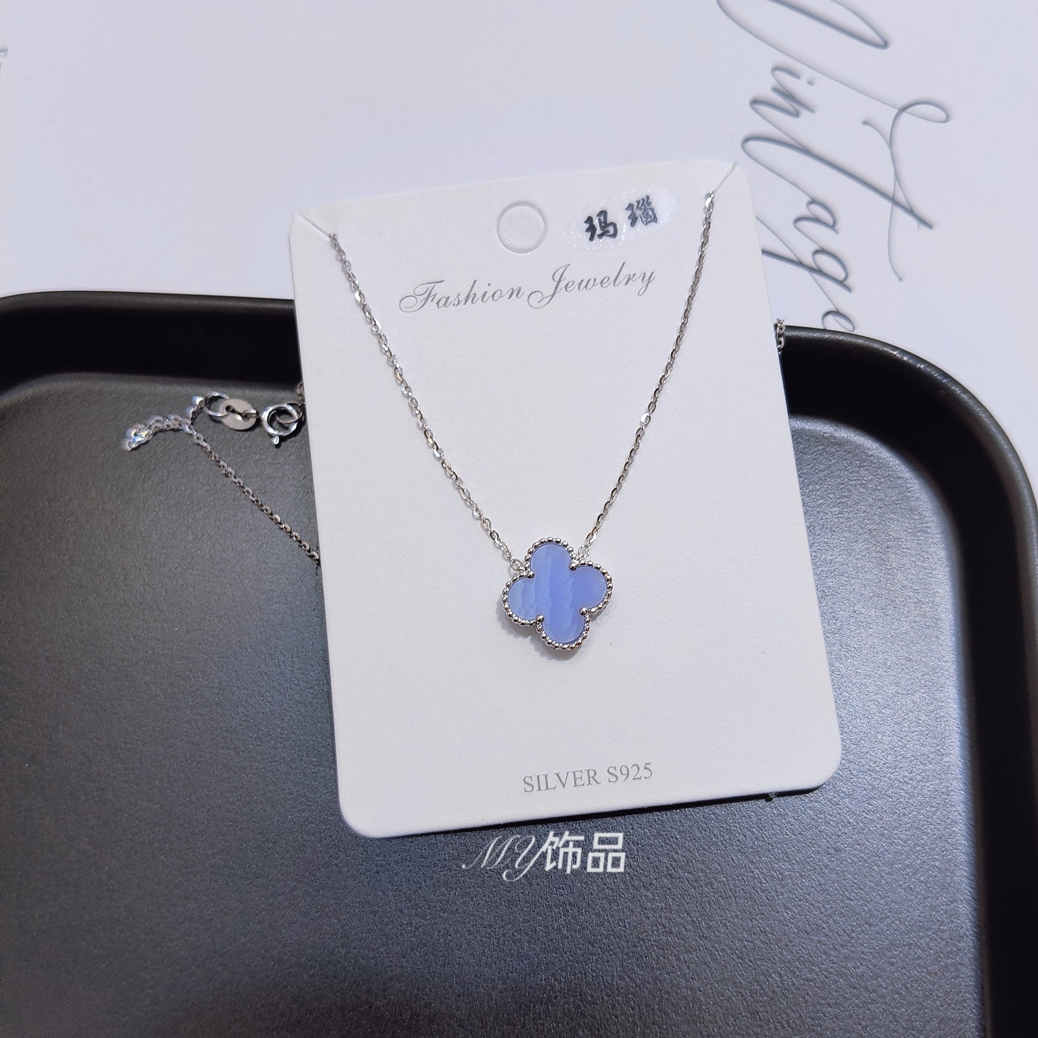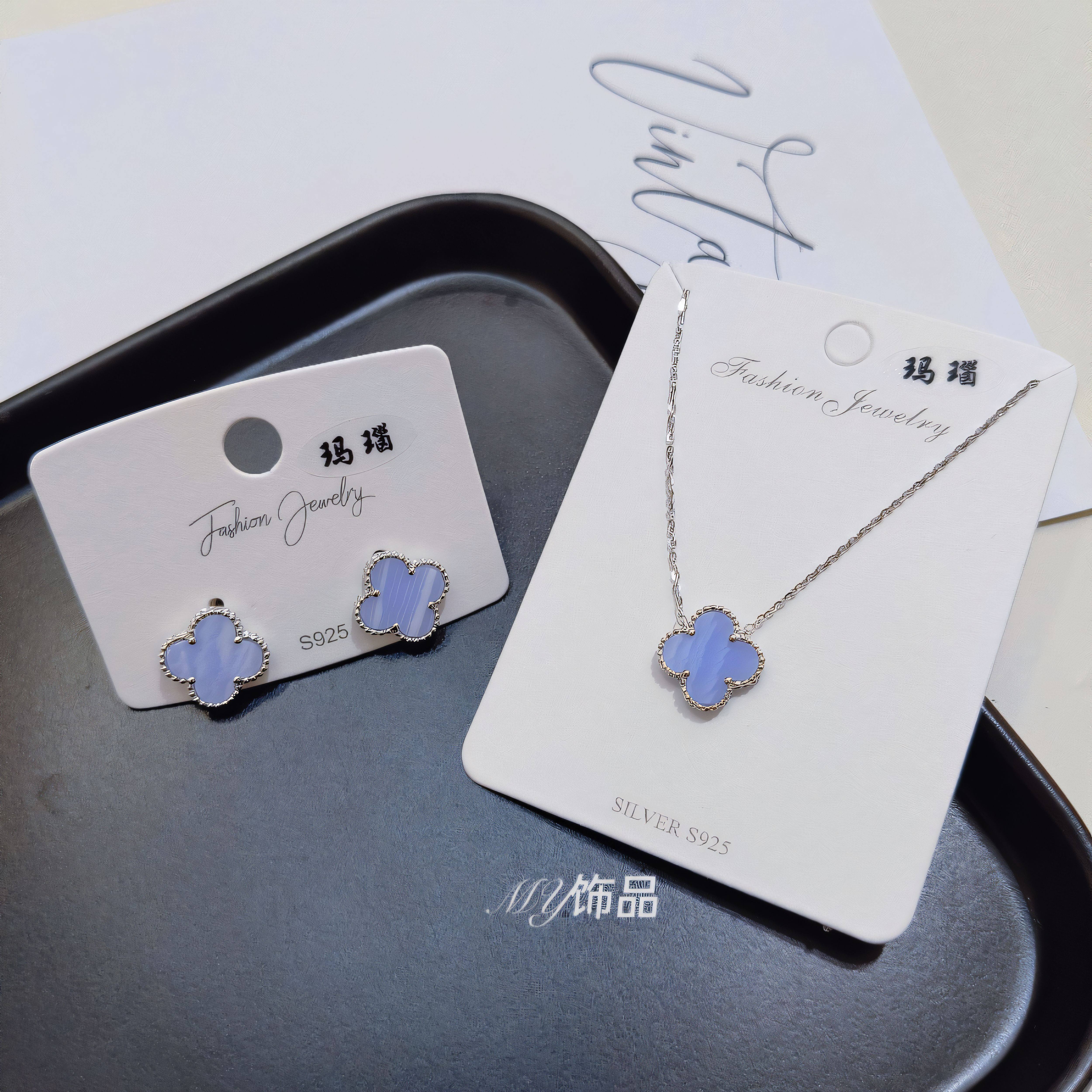 韩国新款淡蓝色925银四叶草项链轻奢小众锁骨链颈链配饰耳环耳钉