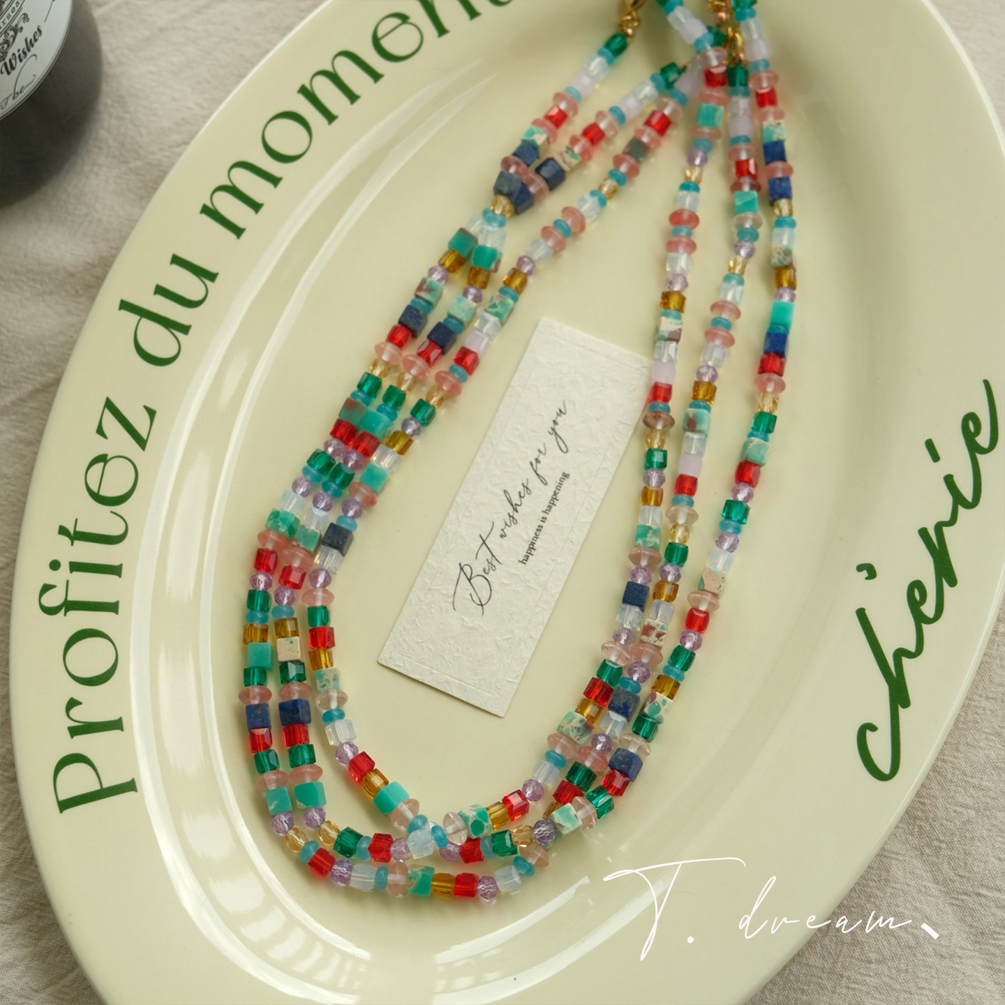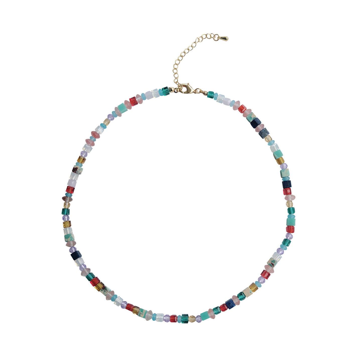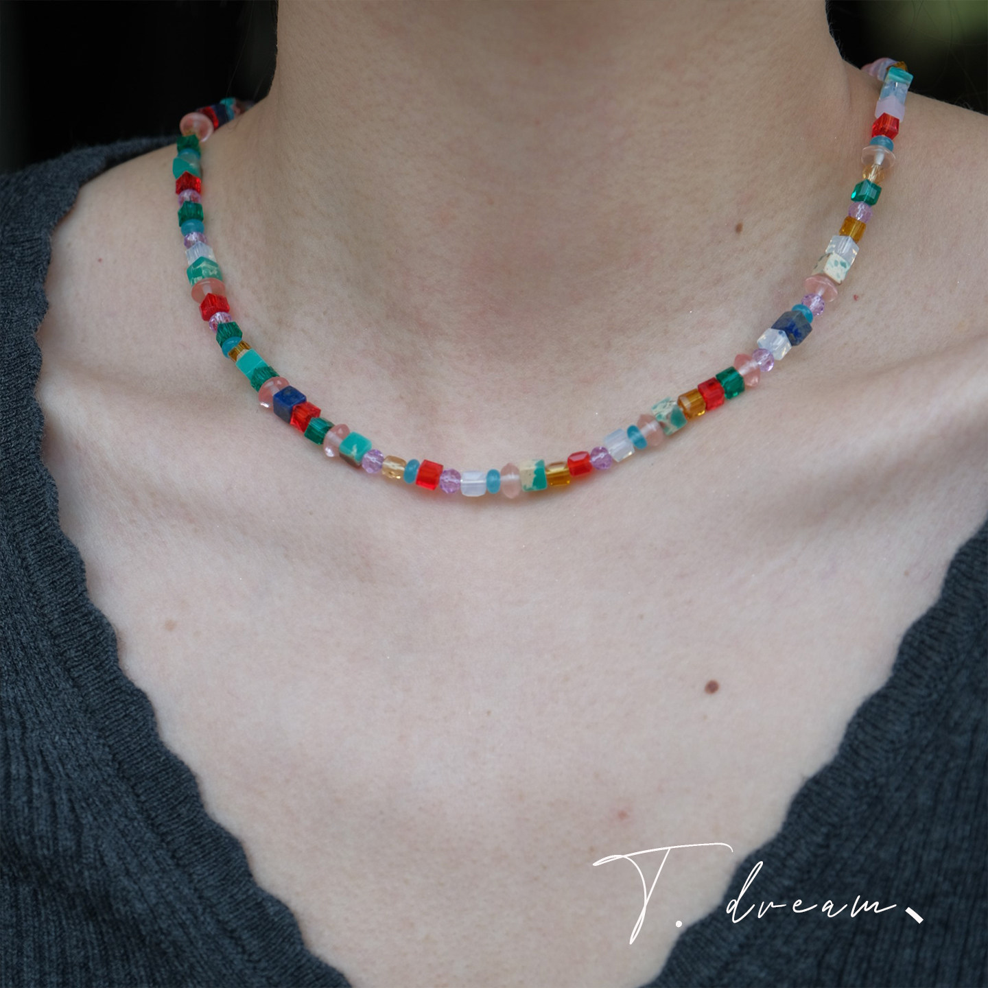 《彩虹岛》彩色多巴胺天然石水晶串珠项链高级锁骨链小众2026新款