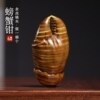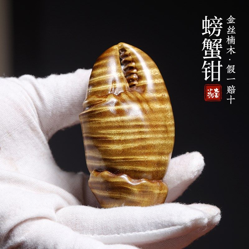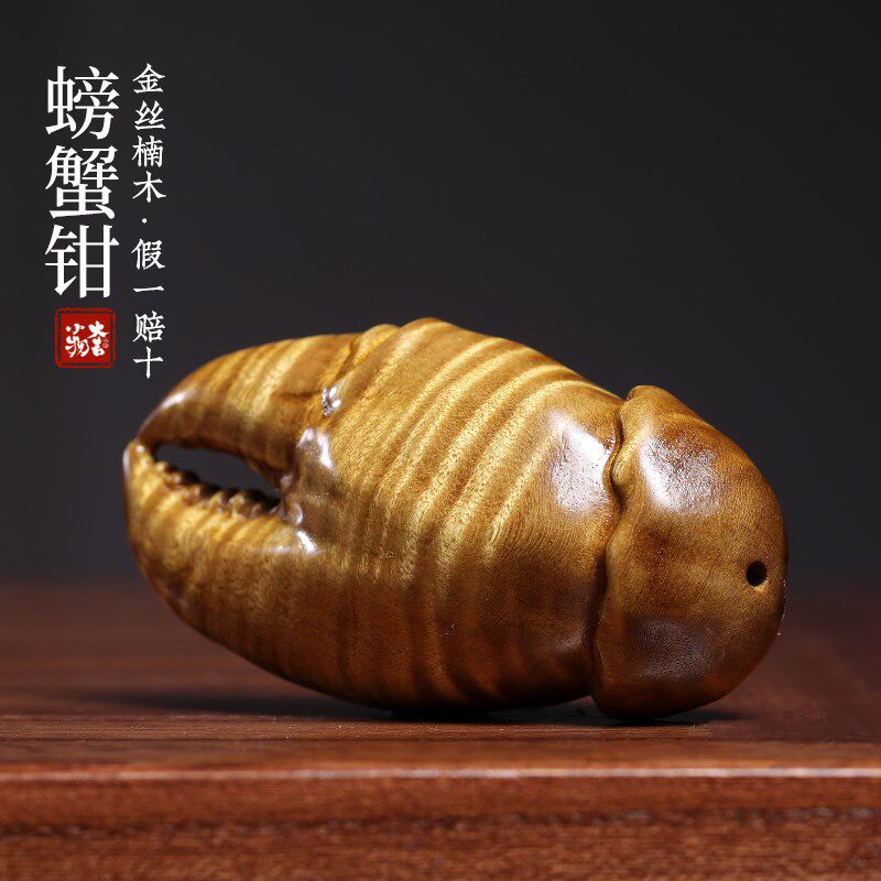 天然金丝楠木水波纹螃蟹钳摆件雕刻手把件工艺文玩招财桌面小摆件