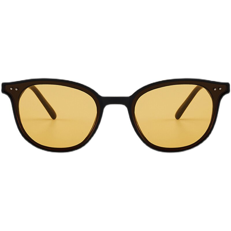橘黄色韩版铆钉墨镜男复古潮lang偏光遮阳小脸款复古圆脸太阳镜女