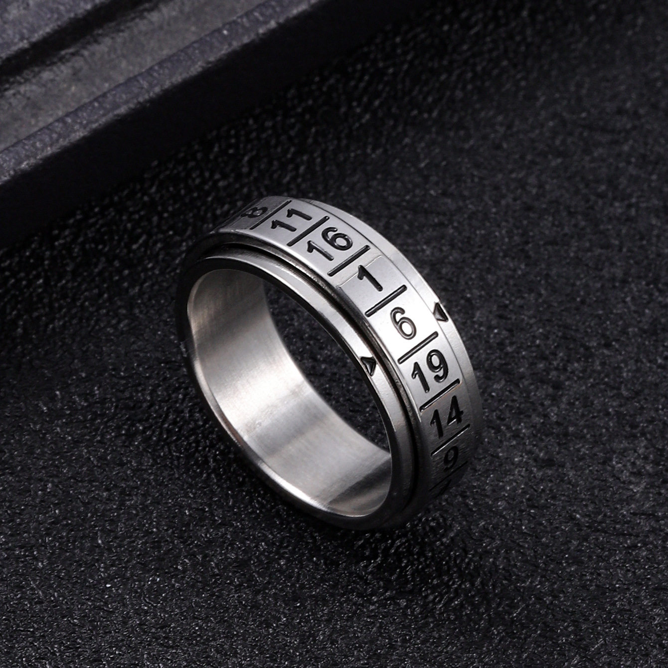 欧美跨境百搭简约可转动钛钢数字戒指个性阿拉伯字指环饰品批发女