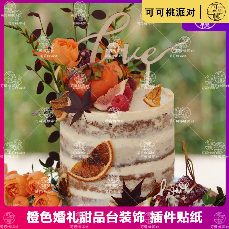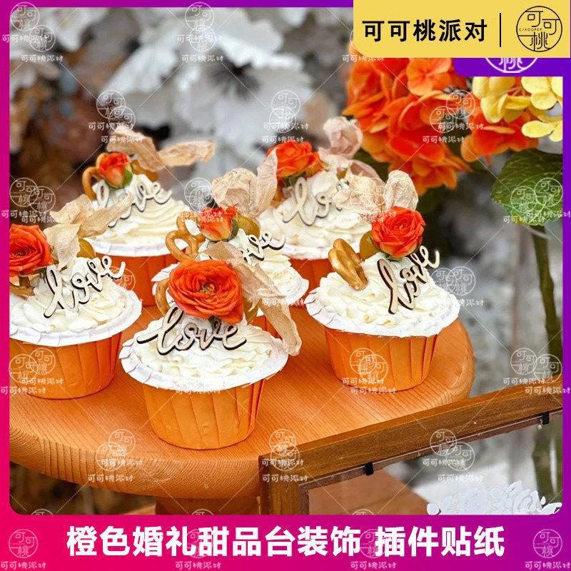 橘色橙色婚礼甜品台装饰摆件香槟杯贴纸Wedding插件布丁杯封口纸