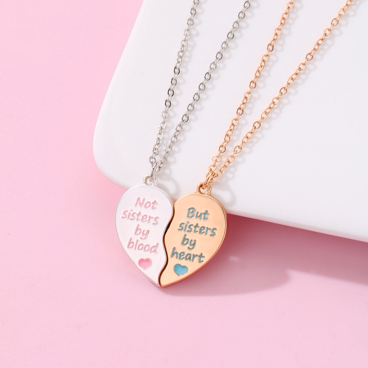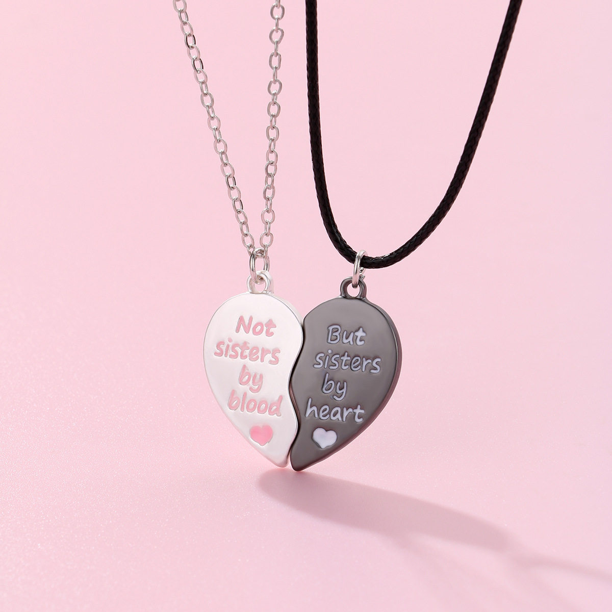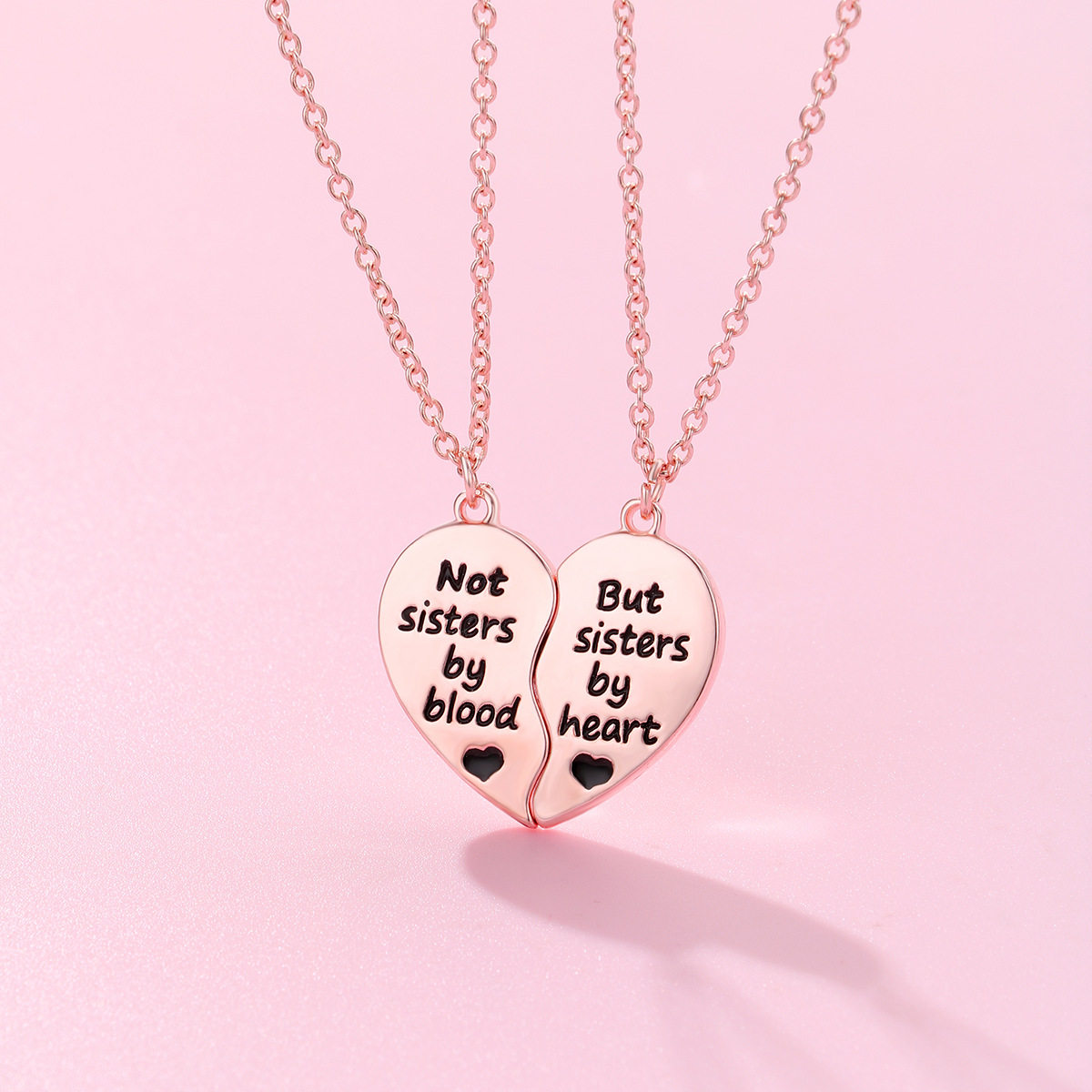 好朋友磁吸吊坠项链简约日韩清新二人锁骨链学生爱心字母拼接姐妹
