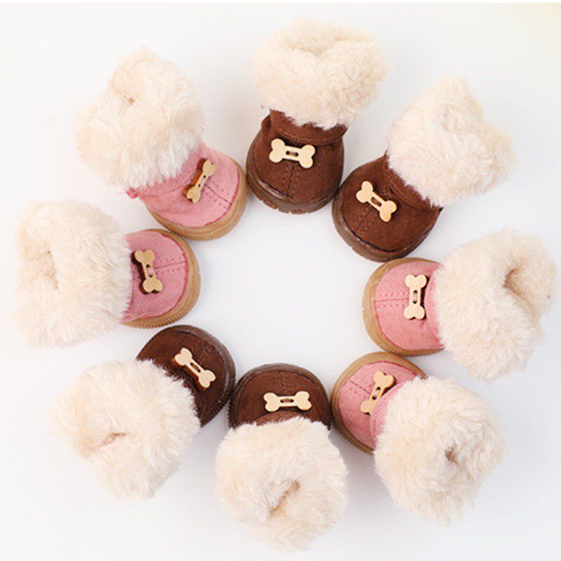 Thick Fur Pet Shoes Winter Small Dog Shoes Anti-slip Warm Do