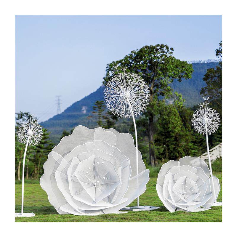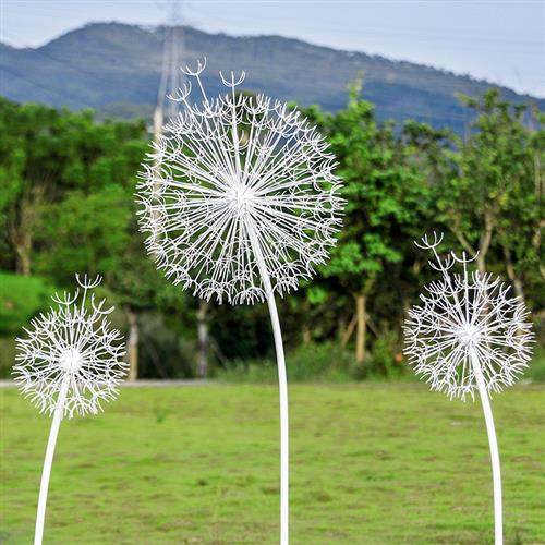 户外草坪铁艺发光蒲公英花朵雕塑不锈钢园林景观美陈装饰品摆件