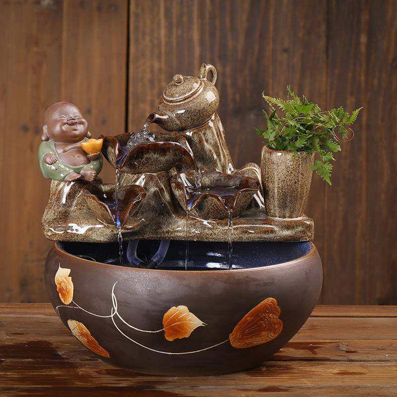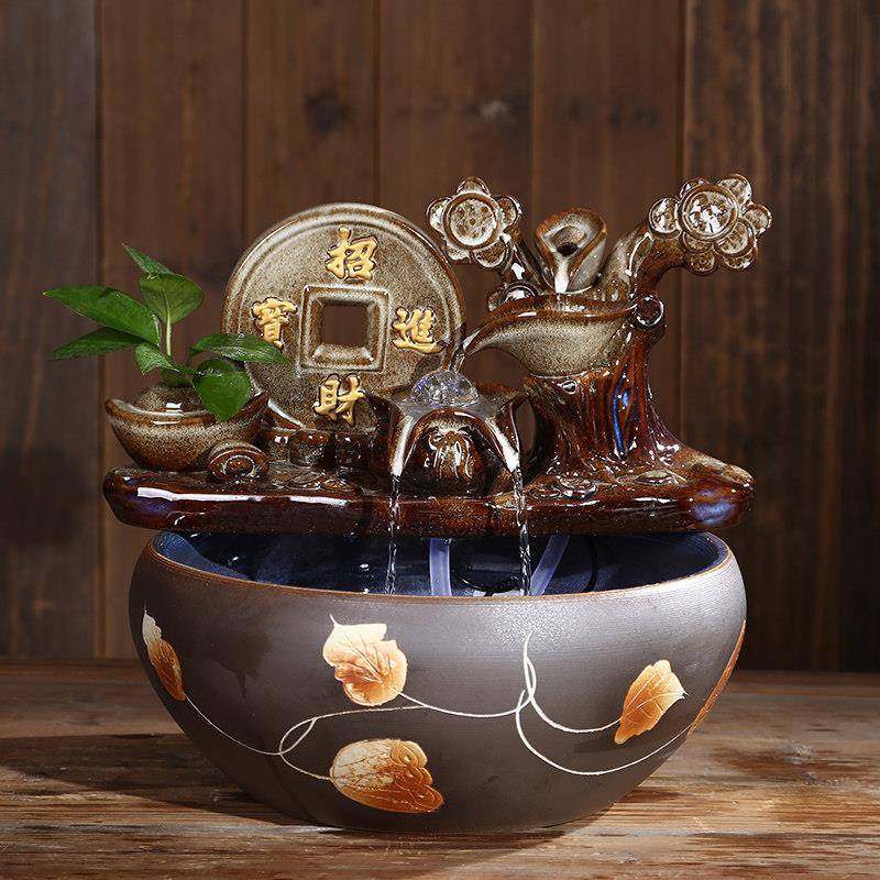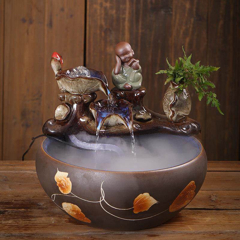 新中式陶瓷流水喷泉摆件客厅桌面循环雾化水景鱼缸加湿器开业礼品