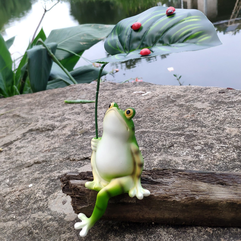 青蛙撑伞摆件户外花园庭院布置装饰阳台工艺品桌面鱼缸造景摆件