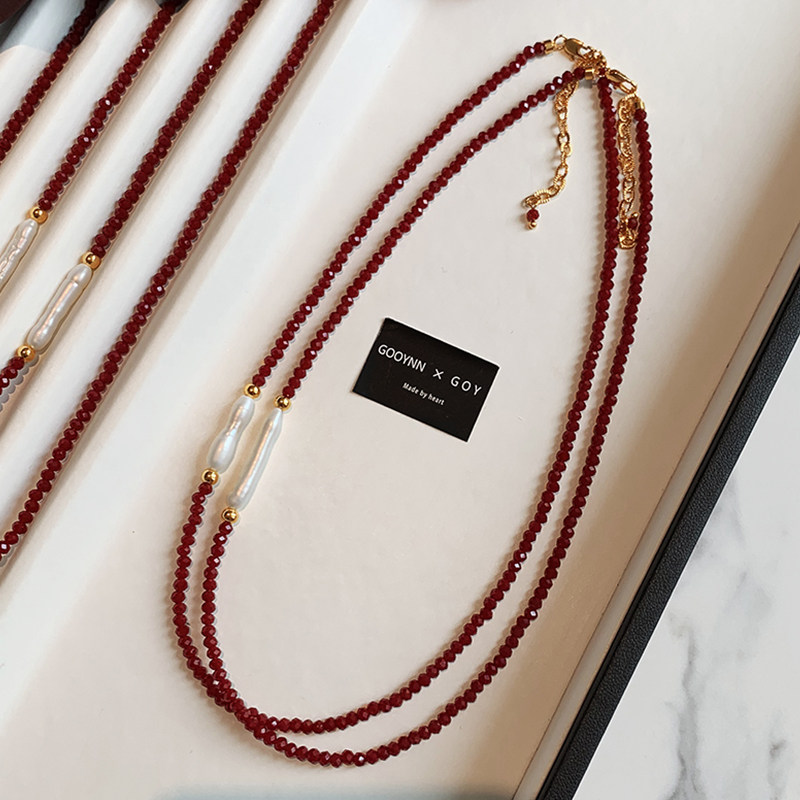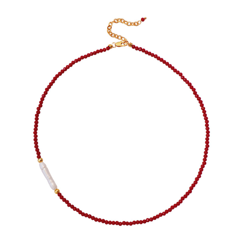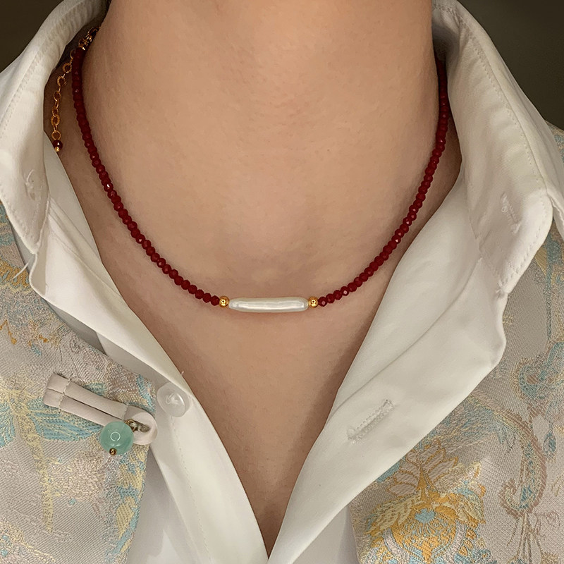 天然巴洛克牙签珍珠项链女新中式红色轻奢高级感本命年锁骨毛衣链