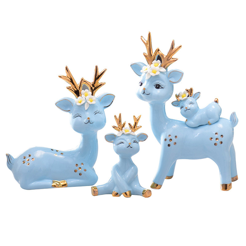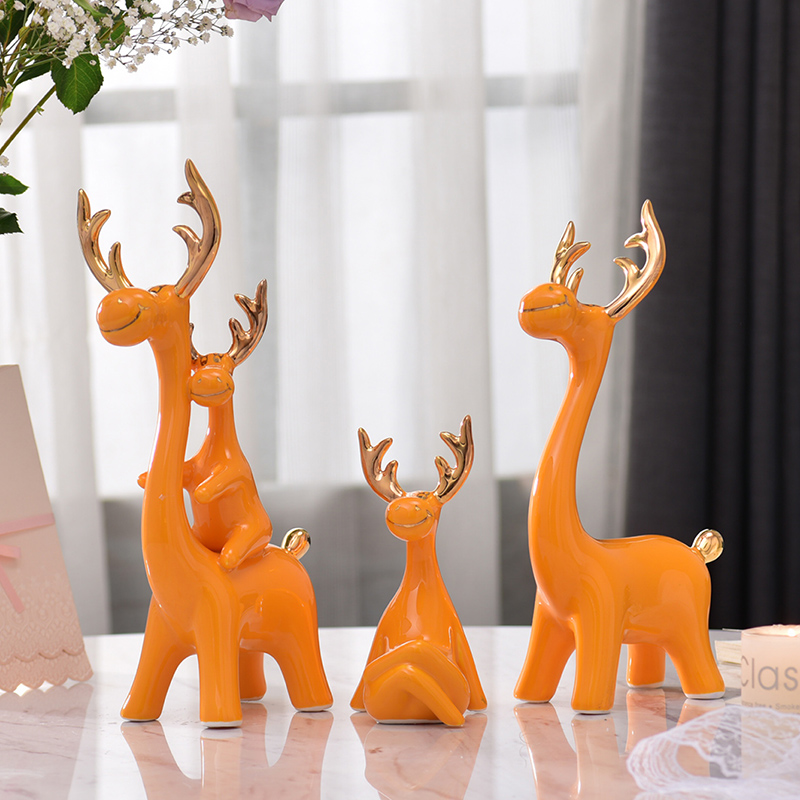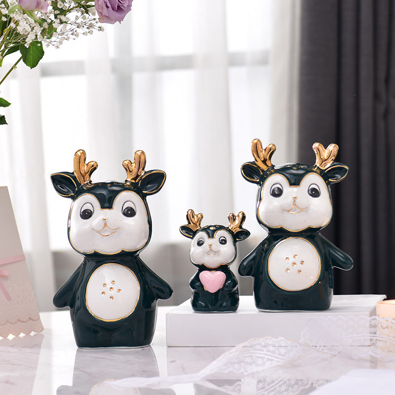 陶瓷梅花鹿麋鹿一家三口四口结婚礼物隔断酒柜装饰品摆件家居摆设