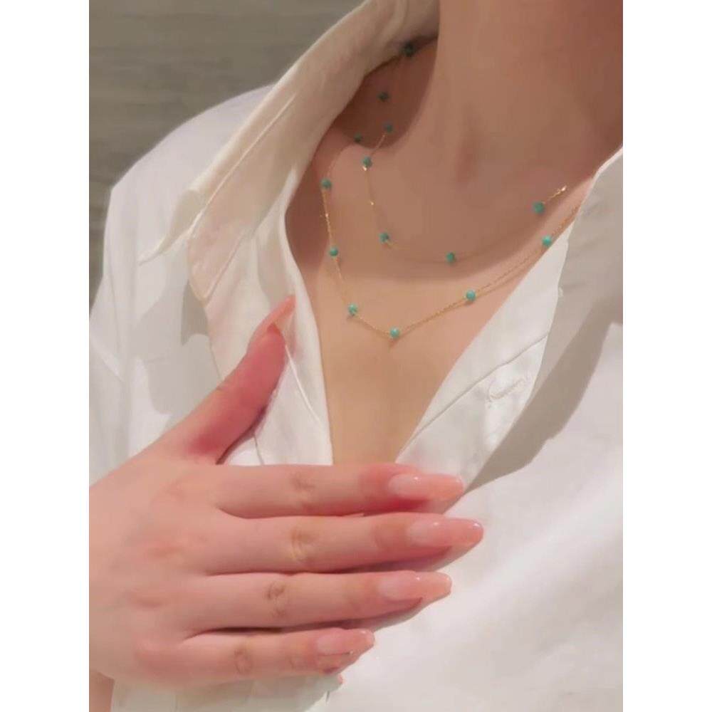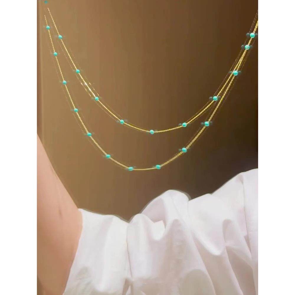 绿色双层串珠项链女2025新爆款叠戴颈链轻奢小众高级感锁骨链配饰