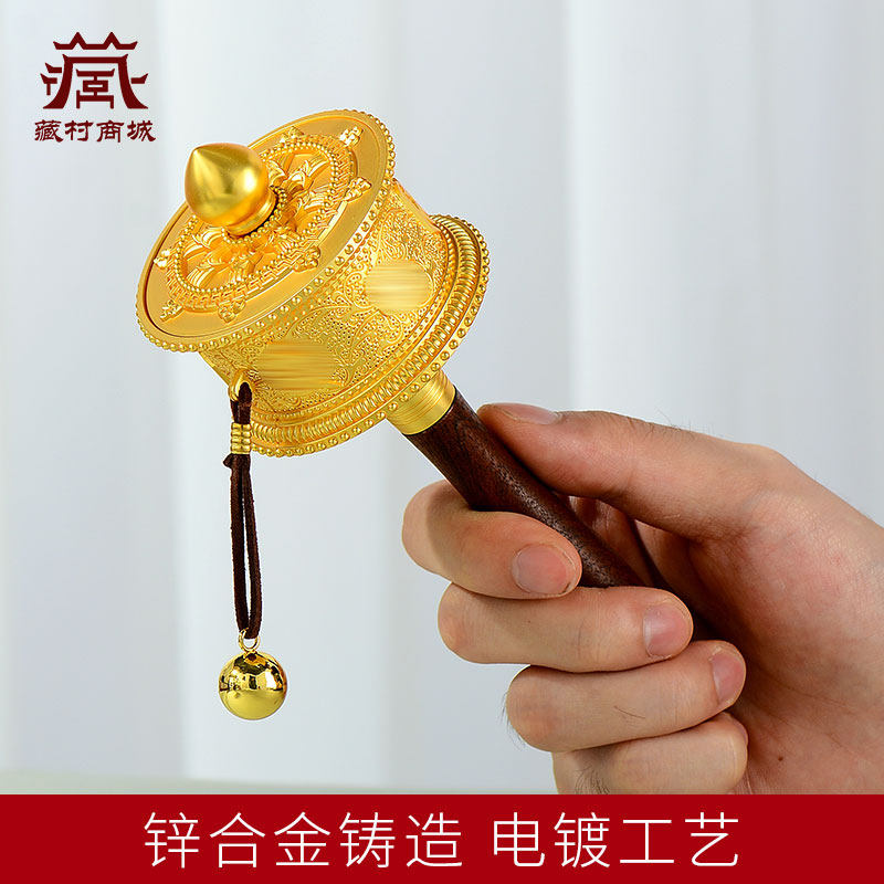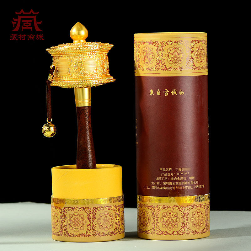 藏村手摇转轮藏式手持转筒六字言转动手转金桶摆件