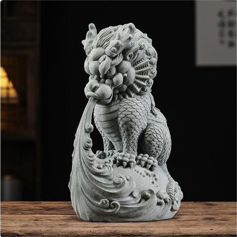 青砂石国潮风鱼缸造景招财吸水神兽客厅玄关茶R室桌面茶宠茶玩摆