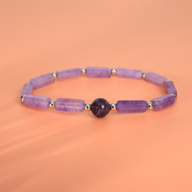 Natural Amethyst Cube Bead Bracelet for Women 2025