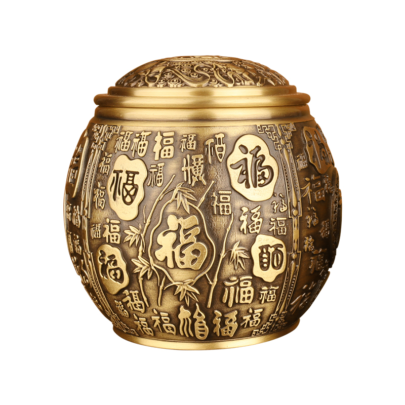 五牛图纯黄铜带盖茶叶罐摆件正品密封罐存茶盒茶仓普洱醒茶储存罐