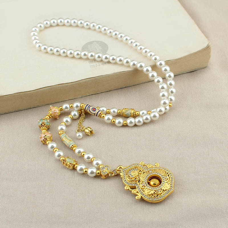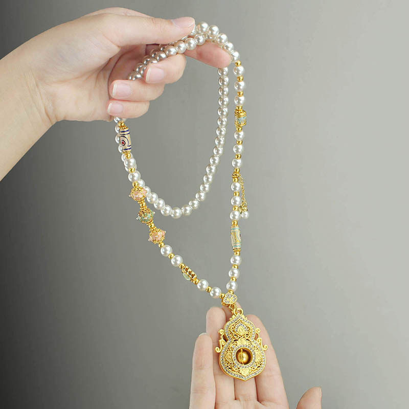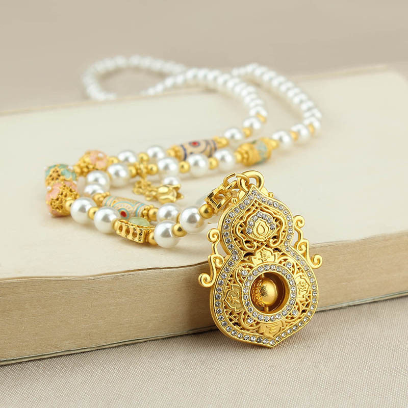 新款古法葫芦仿珍珠长款项链女新中式气质百搭国风旗袍马面裙配饰