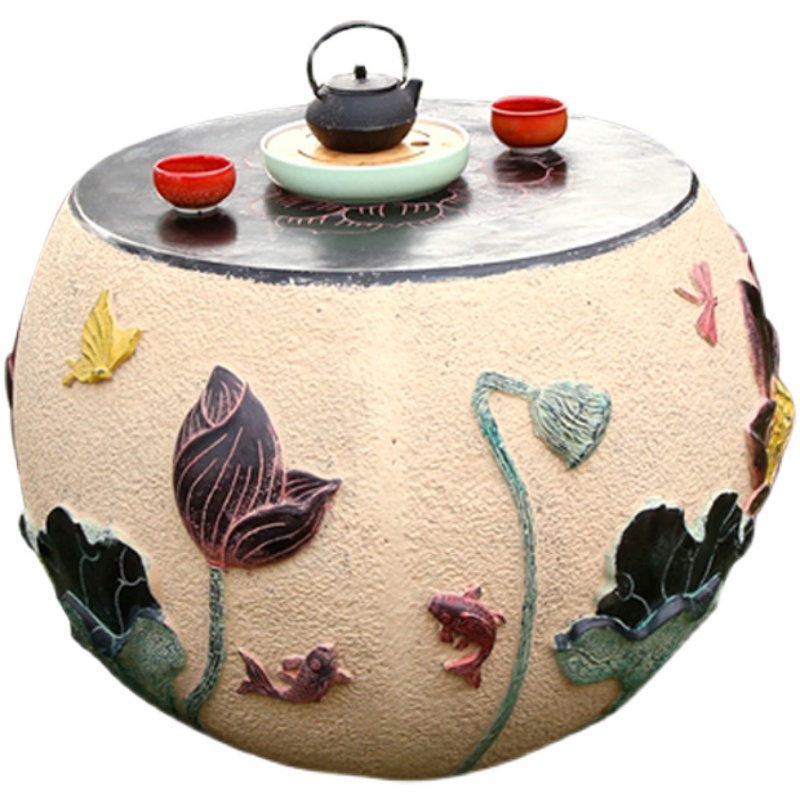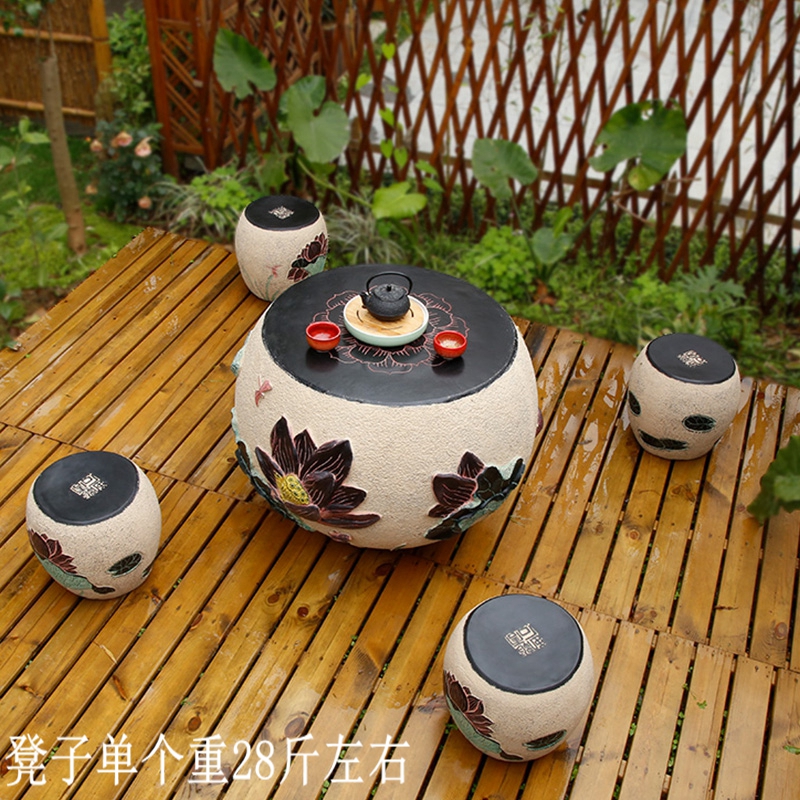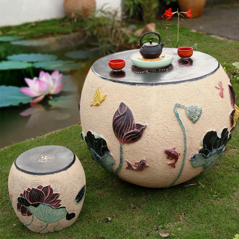 别墅庭院装饰摆件小院子阳台禅意茶桌凳子组合户外荷花茶几套装