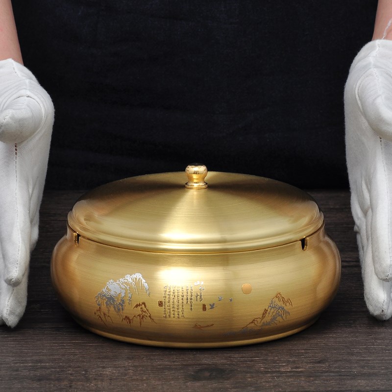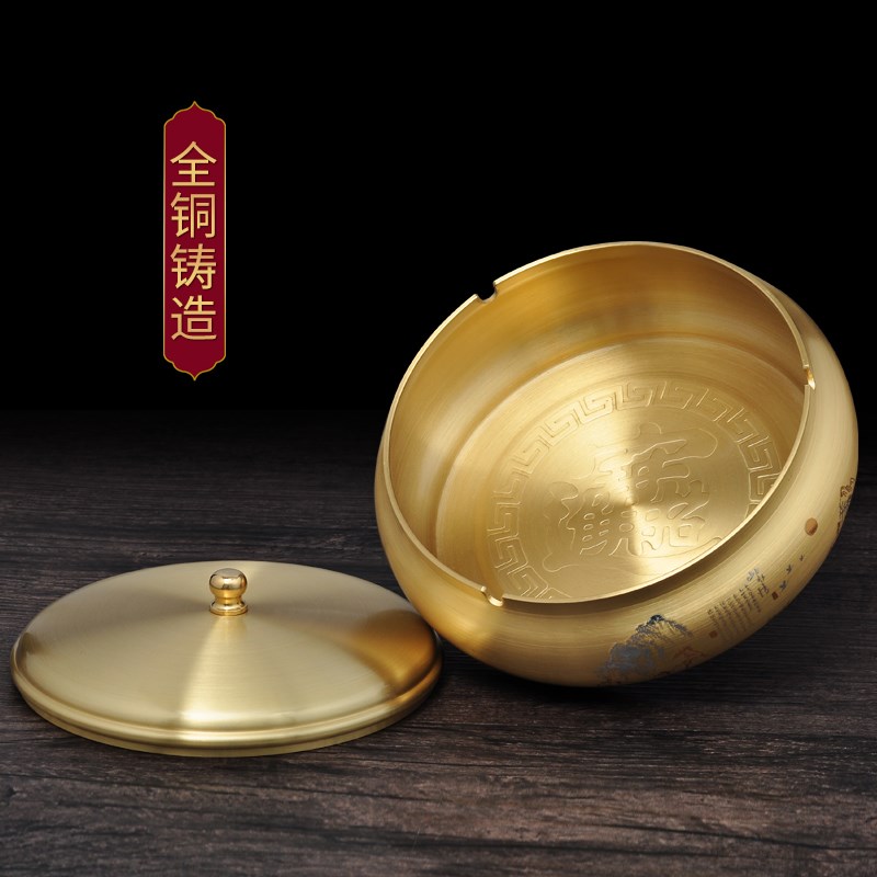 黄铜防飞灰带盖密封烟灰缸摆件家用客厅办公室焑灰缸烟缸工艺品