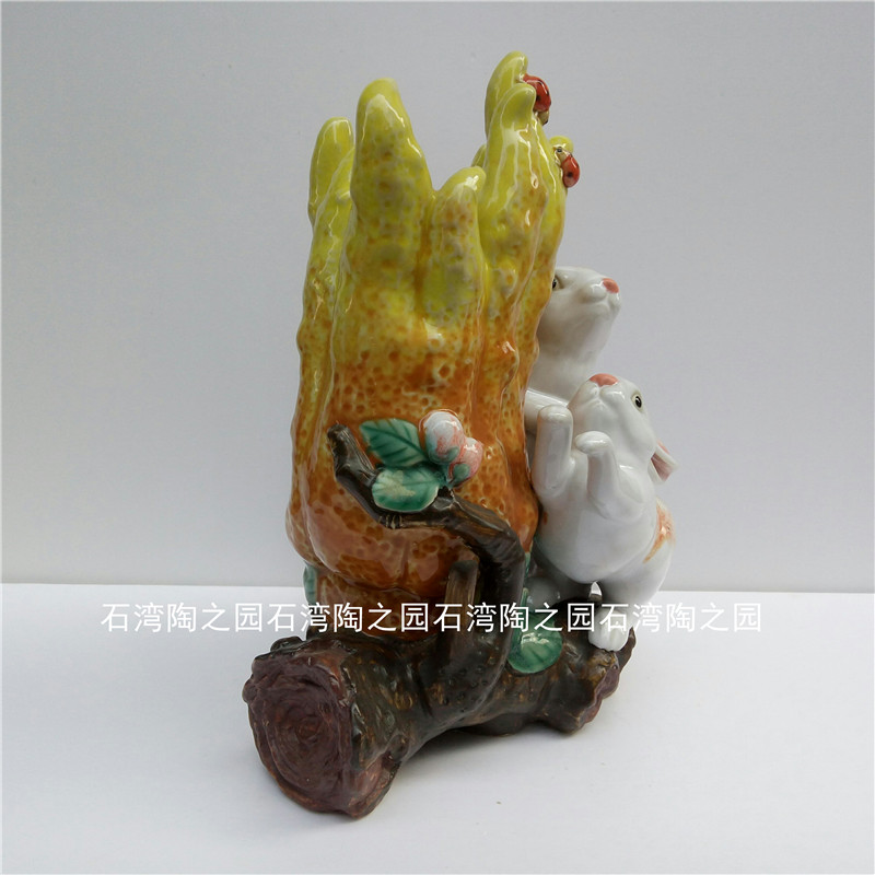 石湾公仔陶瓷十二生肖孖兔动物家居装饰摆件客厅桌面佛手瓜花瓶