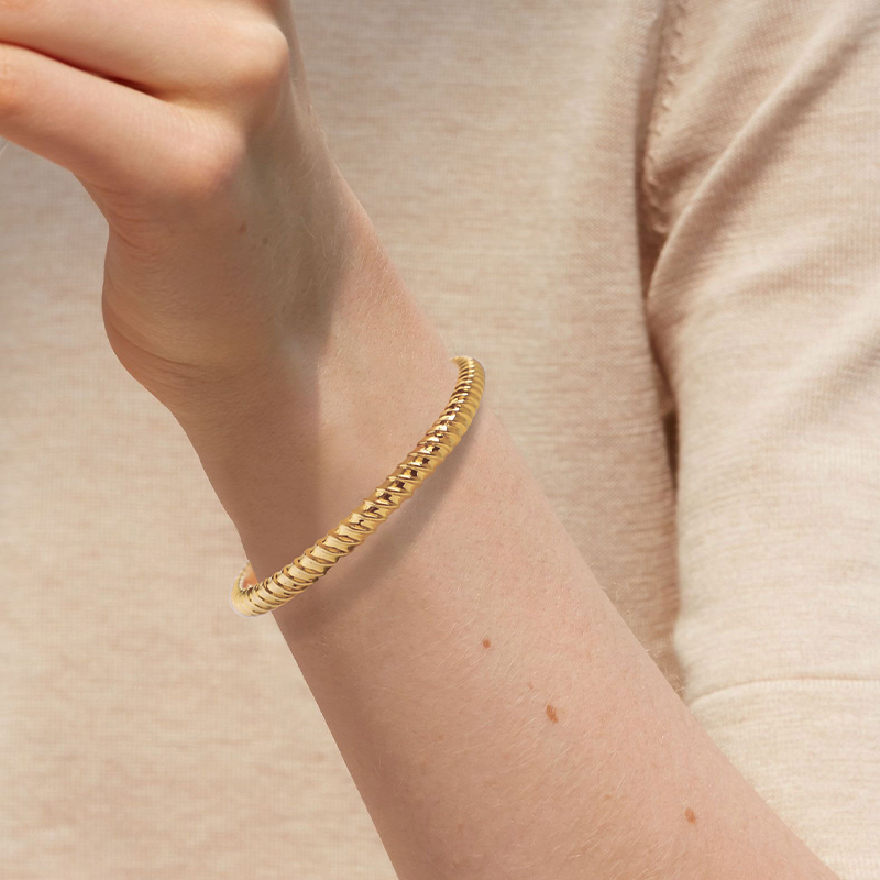 FETTERO金色螺纹开口手镯男女款时尚轻奢字母手圈高级感欧美ins风