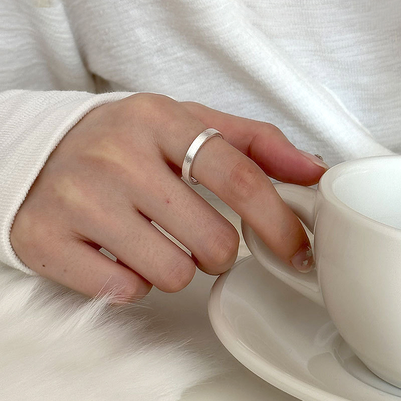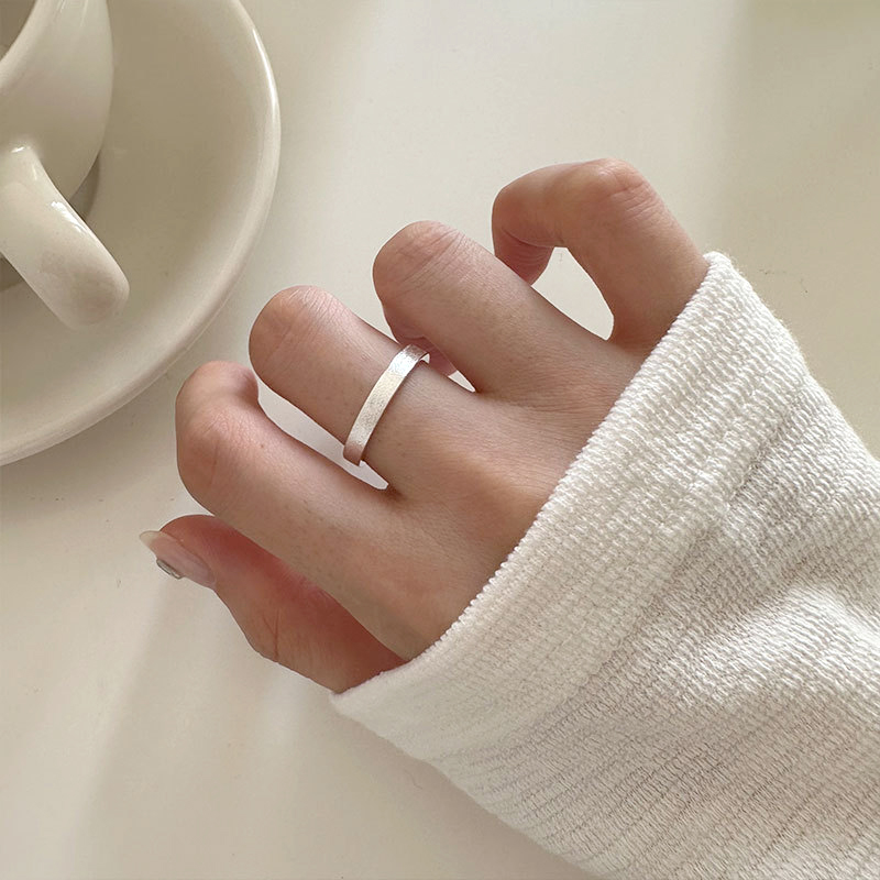 s925银戒指可调极简拉丝磨砂指环复古风小众气质高级感开口食指戒