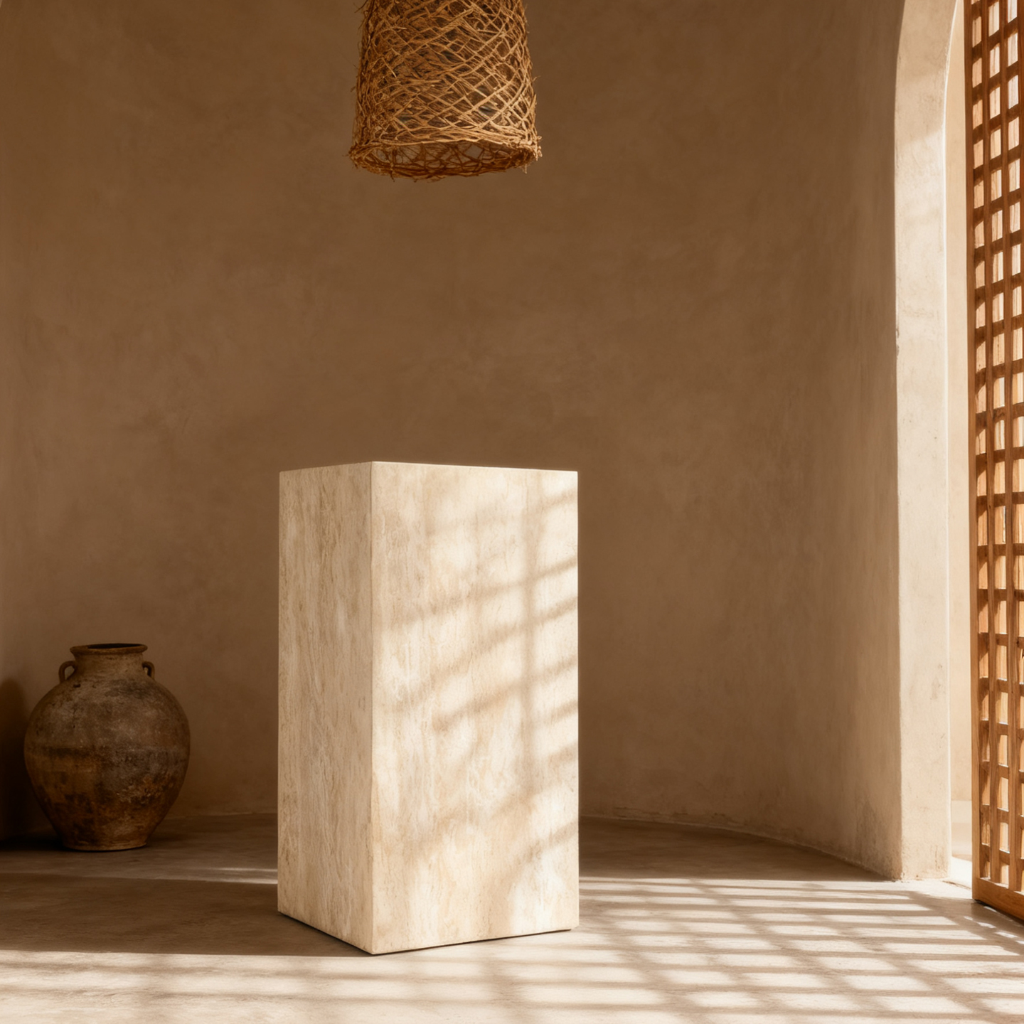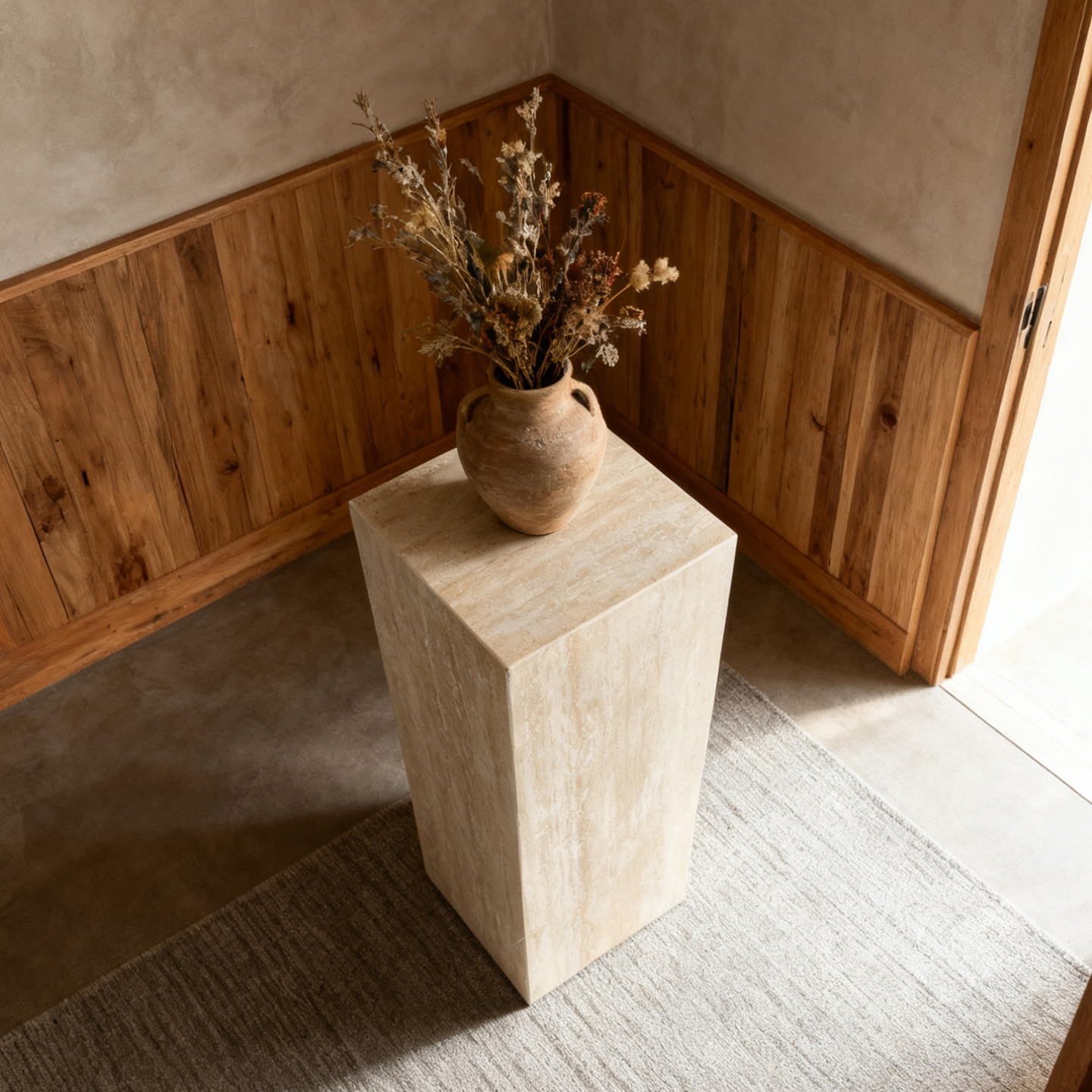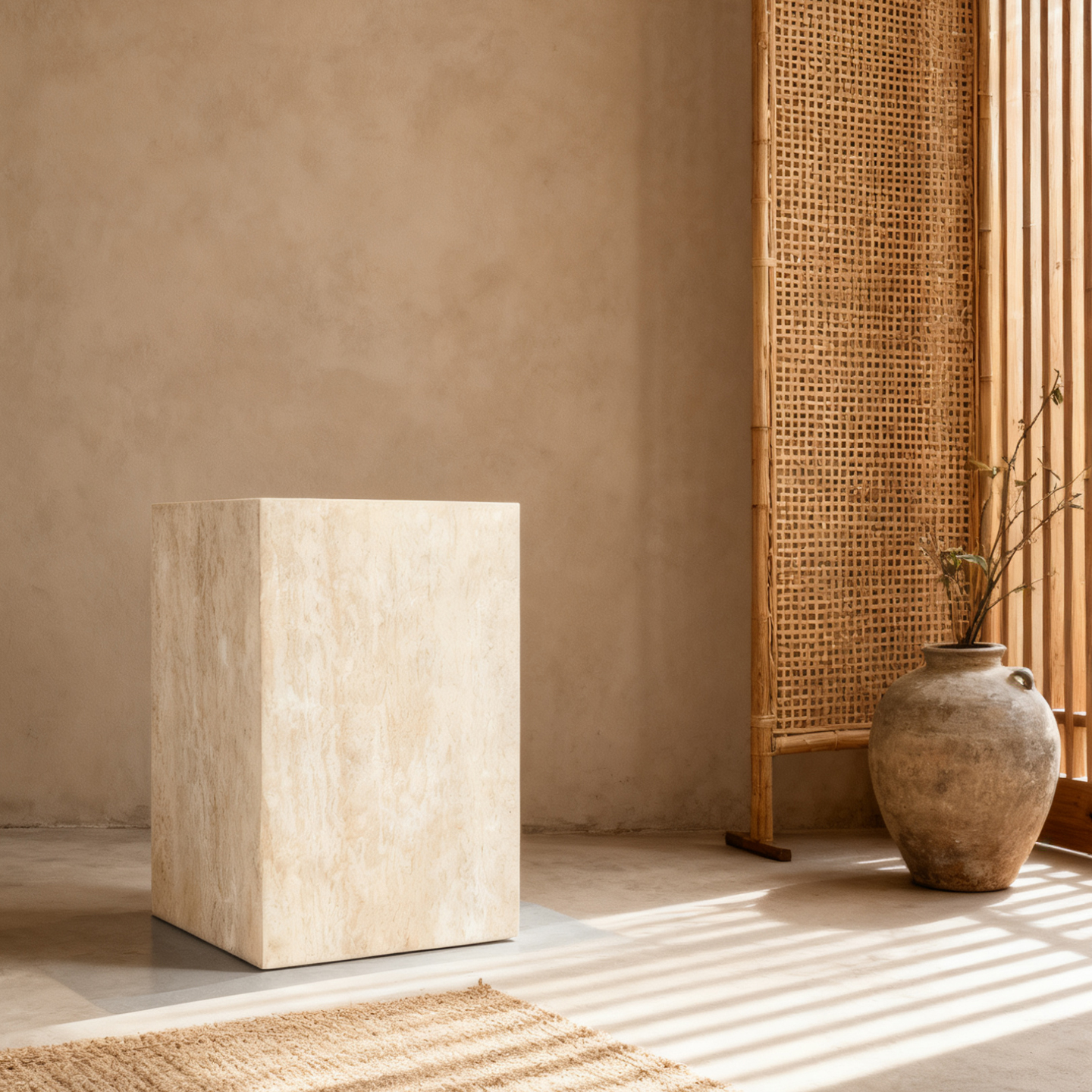 天然洞石大理石摆件底座侘寂风民宿酒店客厅边几高级感落地展示台