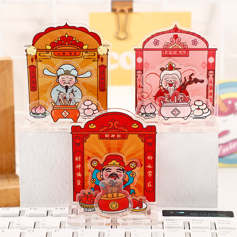 财神爷立牌摆件灶王爷月老文曲星神仙摆件亚克力办公室神器桌面