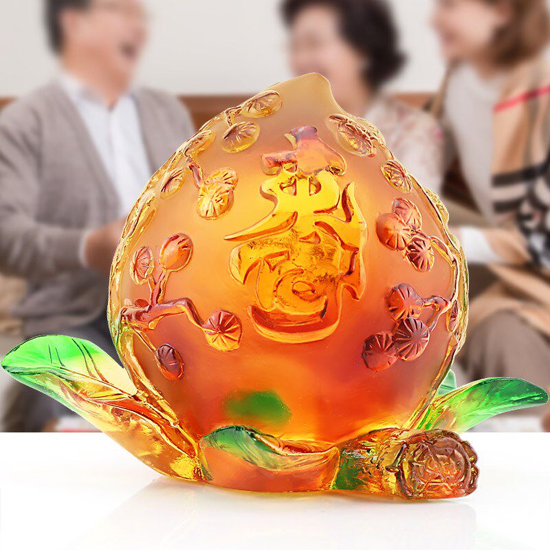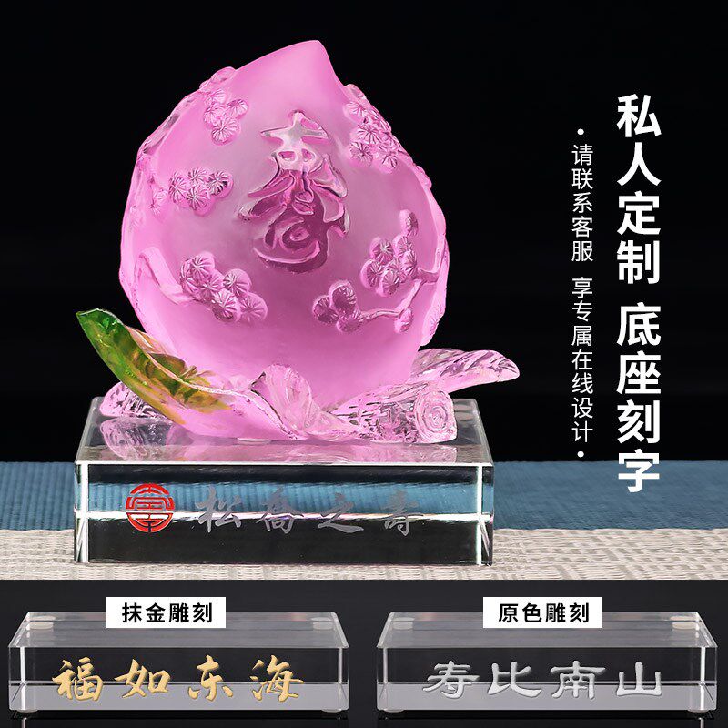 琉璃寿桃工艺品送老人长辈生日贺寿礼品松鹤N七十寿桃摆件客厅摆