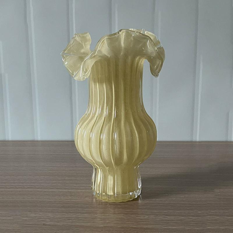 法式百褶花瓶温柔紫装饰摆件客厅插花高级感复古中古芬顿玻璃花器