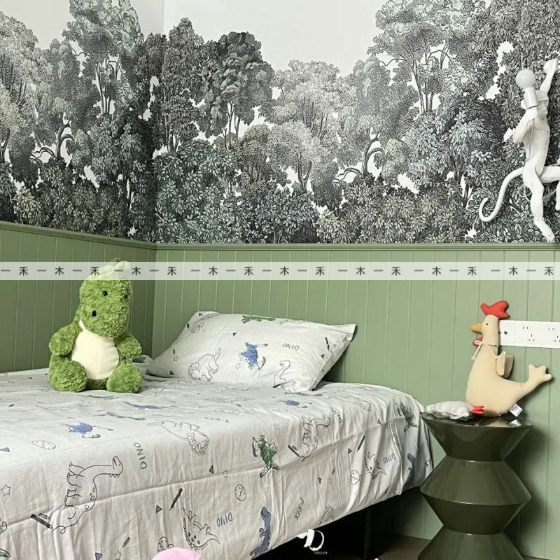 现代样板间儿童房软装摆件绿色系男孩房胖虎手办可爱笔筒装饰品