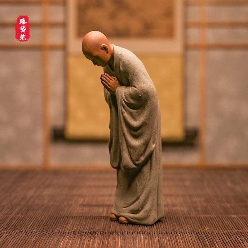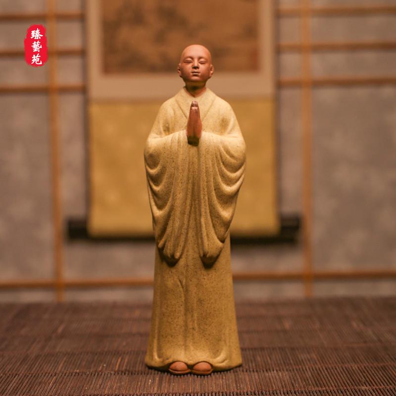 新中式手工紫砂小和尚茶宠摆件小沙弥禅意茶道茶室桌面车载装饰品