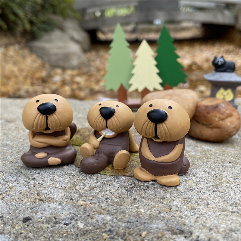 树下盒 日式慵懒丑萌胡子海獭日常系列迷你摆件桌面车载装饰公仔