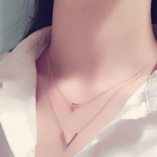绽放的许开心黎笑笑于欣禾同款项链轻奢小众双层V字锆石锁骨链新