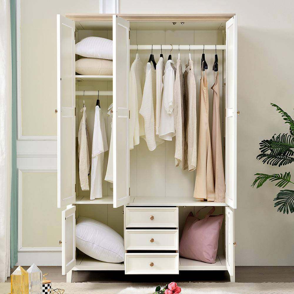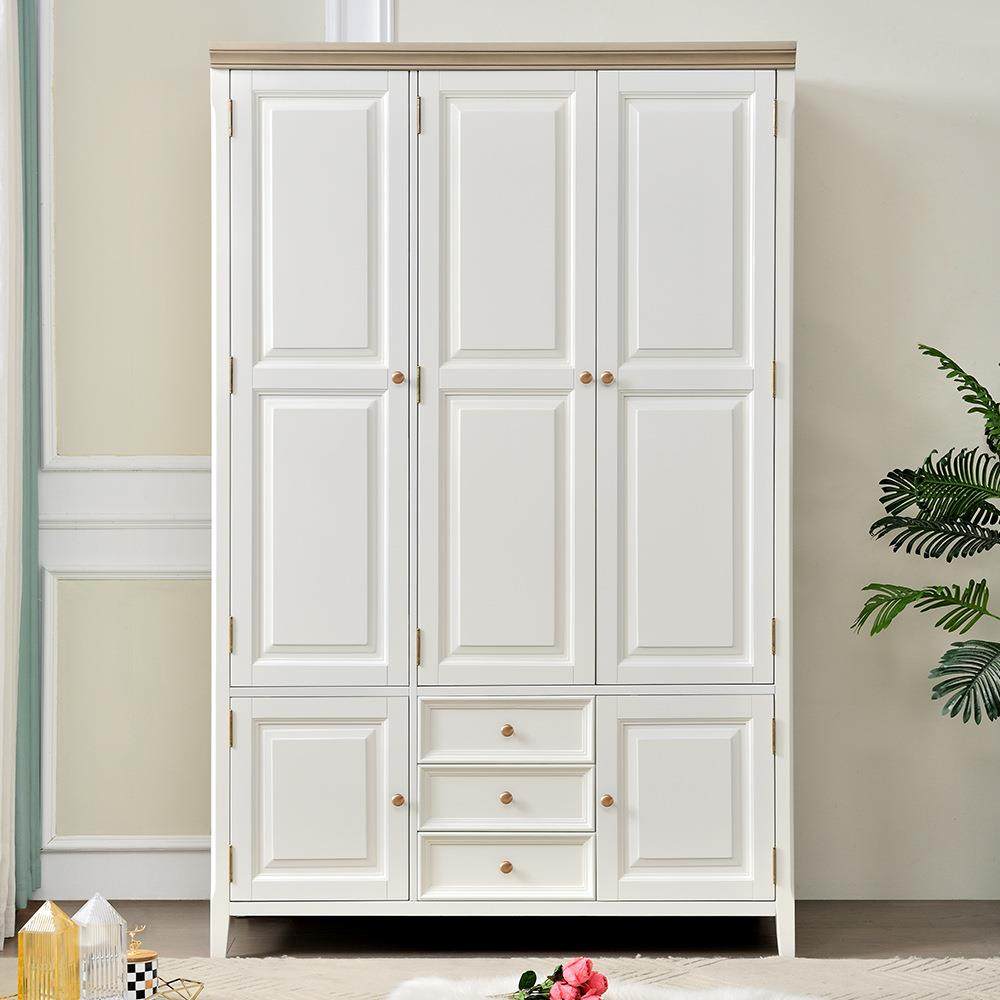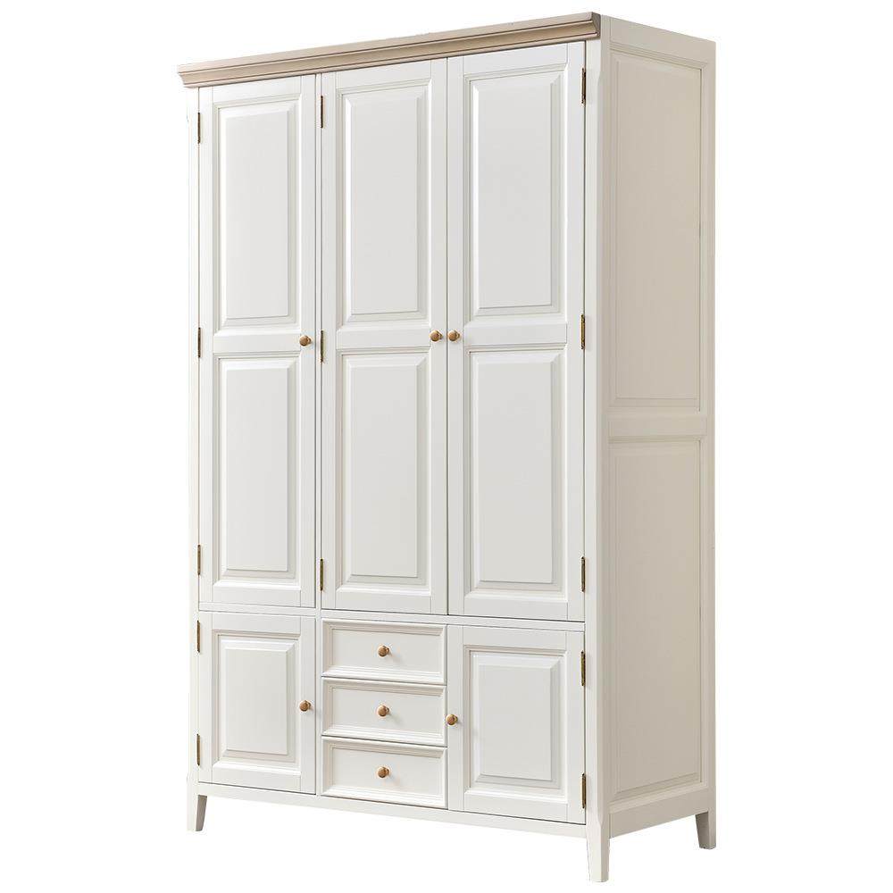 美式白色奶油风实木衣柜三门四门家用卧室全核桃木小户型成品衣橱