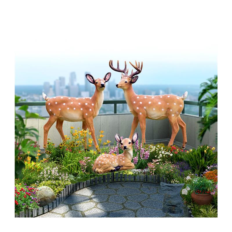 户外园林仿真梅花鹿雕塑装饰玻璃钢动物景观庭院花园草坪麋鹿摆件