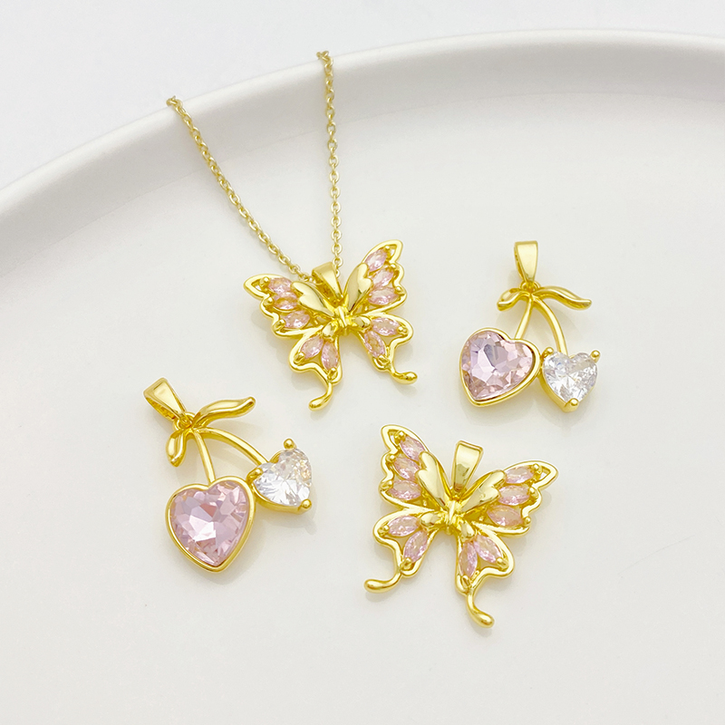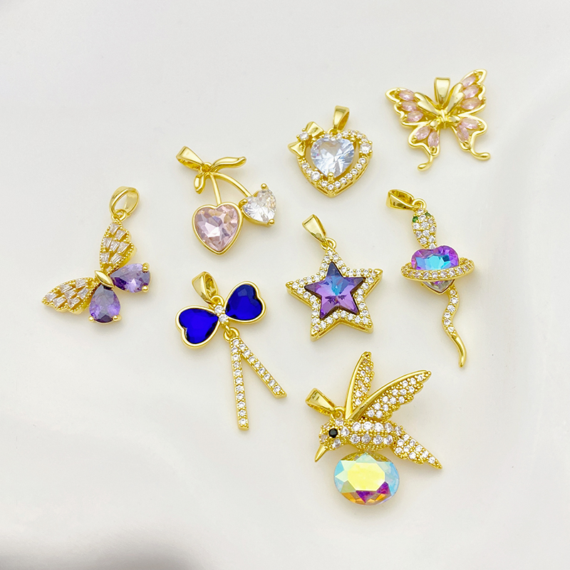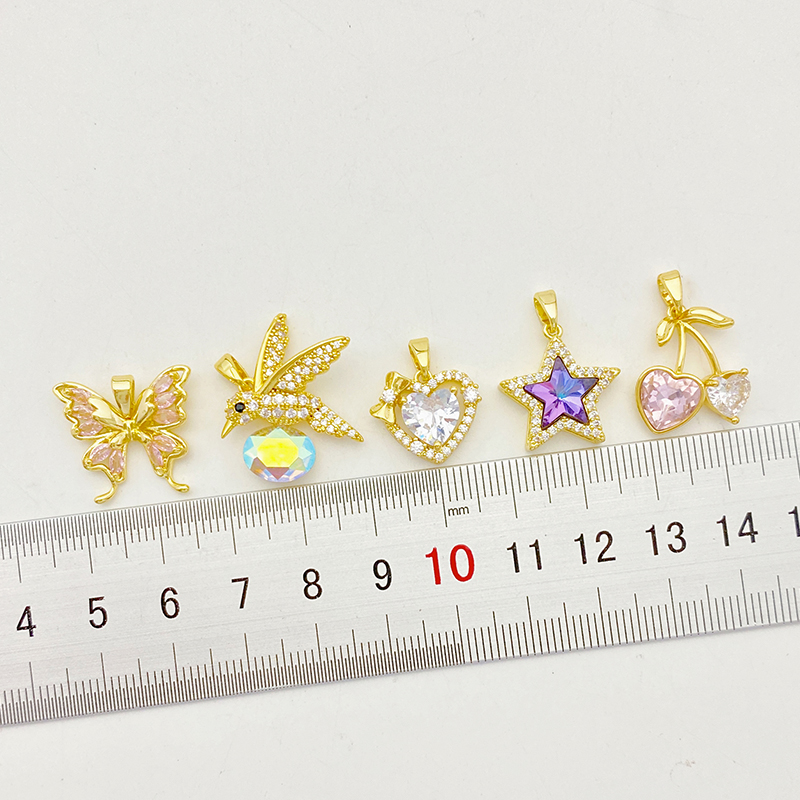 18K包金保色镶锆石蝴蝶樱桃五角星吊坠手工diy手链项链首饰品配件