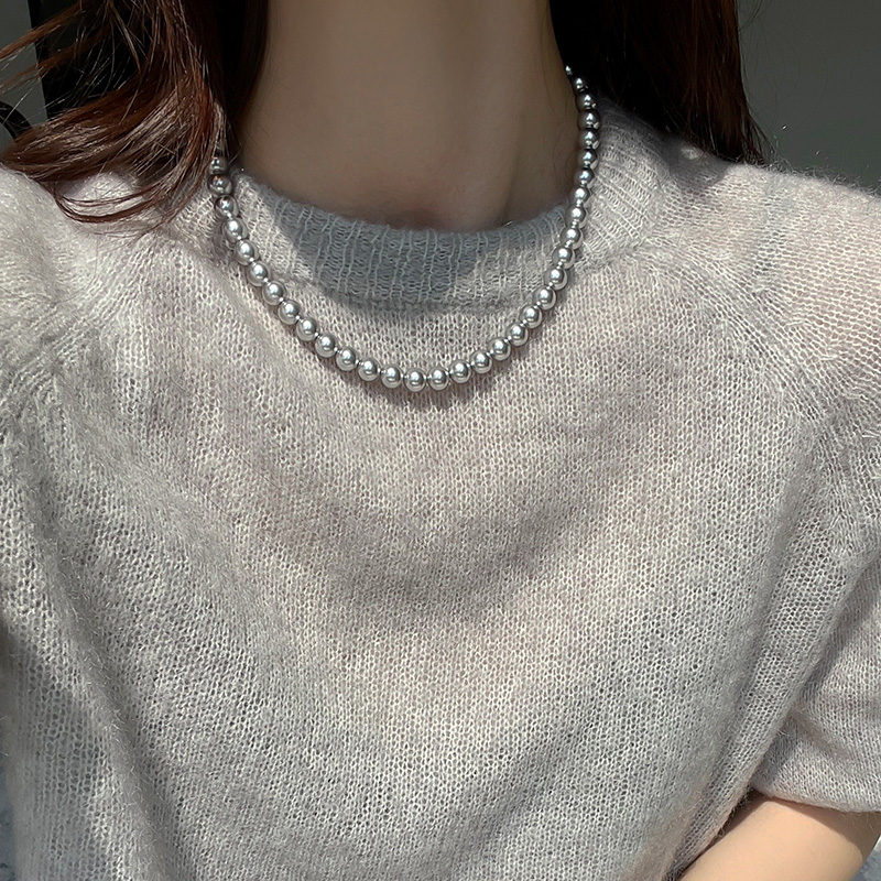施家真多麻灰色珍珠项链颈链轻奢小众毛衣链配饰女款2025新款爆款