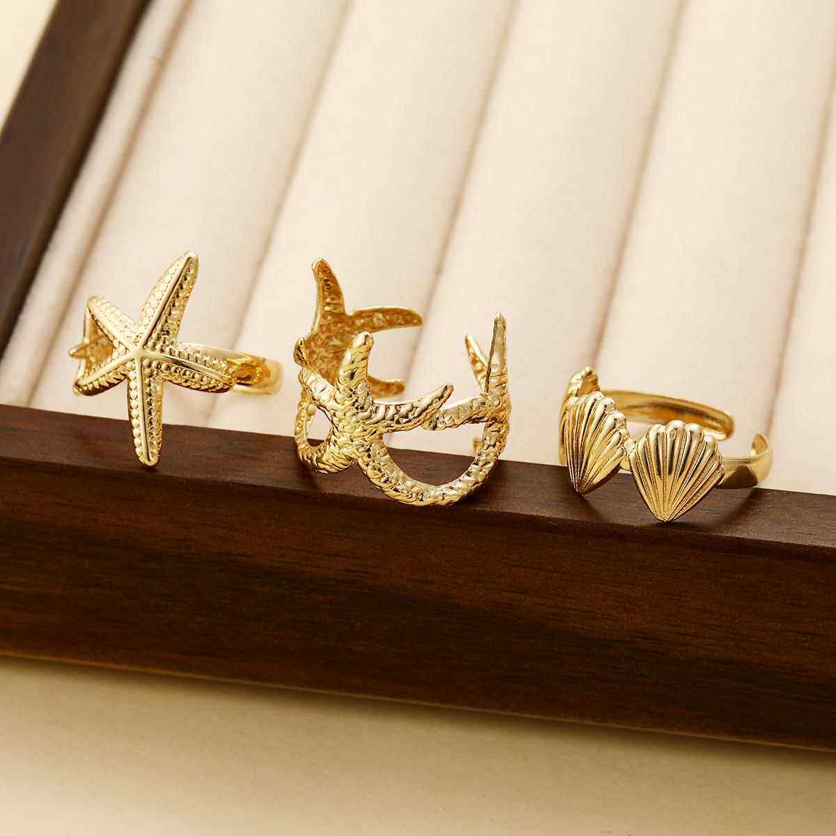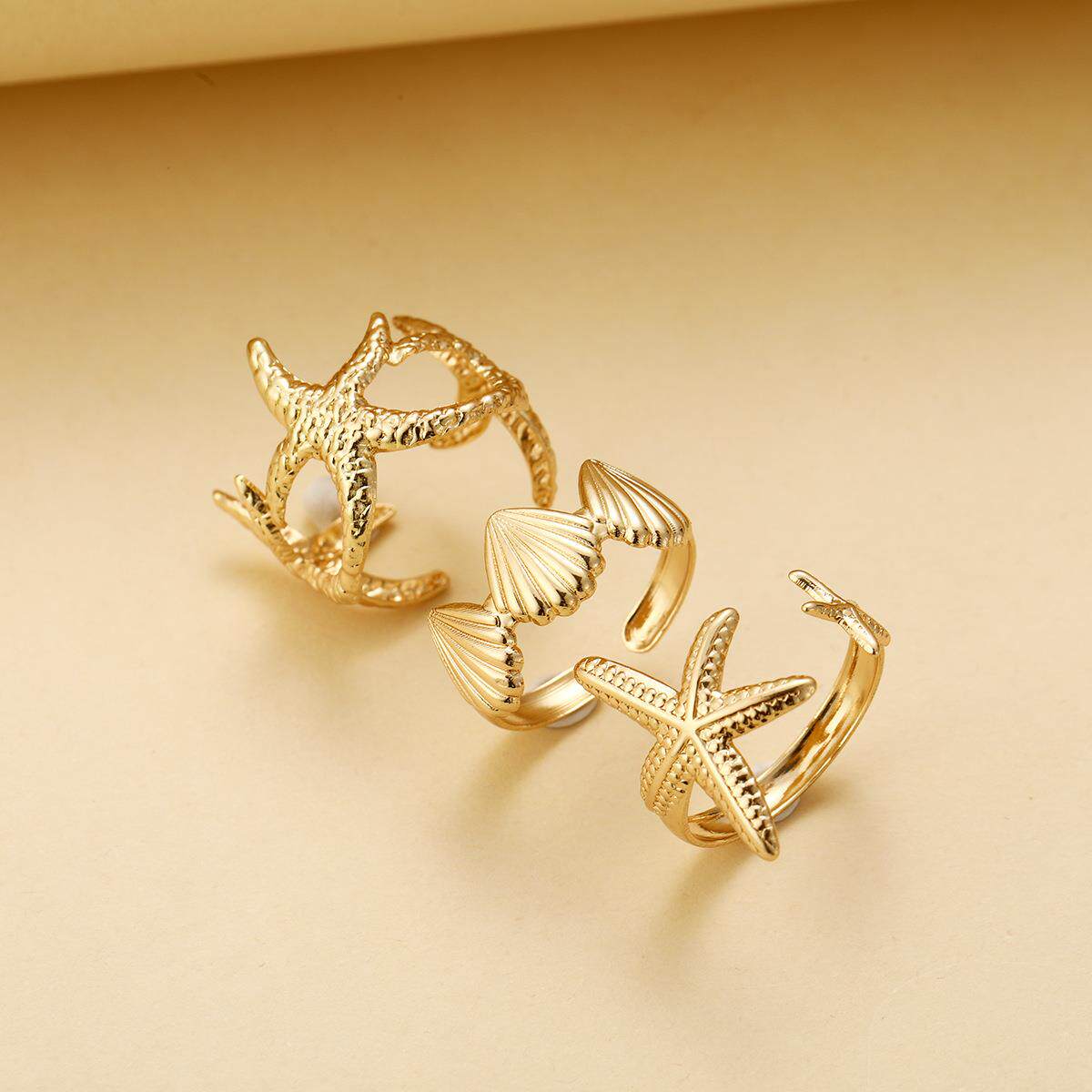 3-piece ring set跨境欧美新款沙滩风休闲 海星贝壳开 口戒指3件