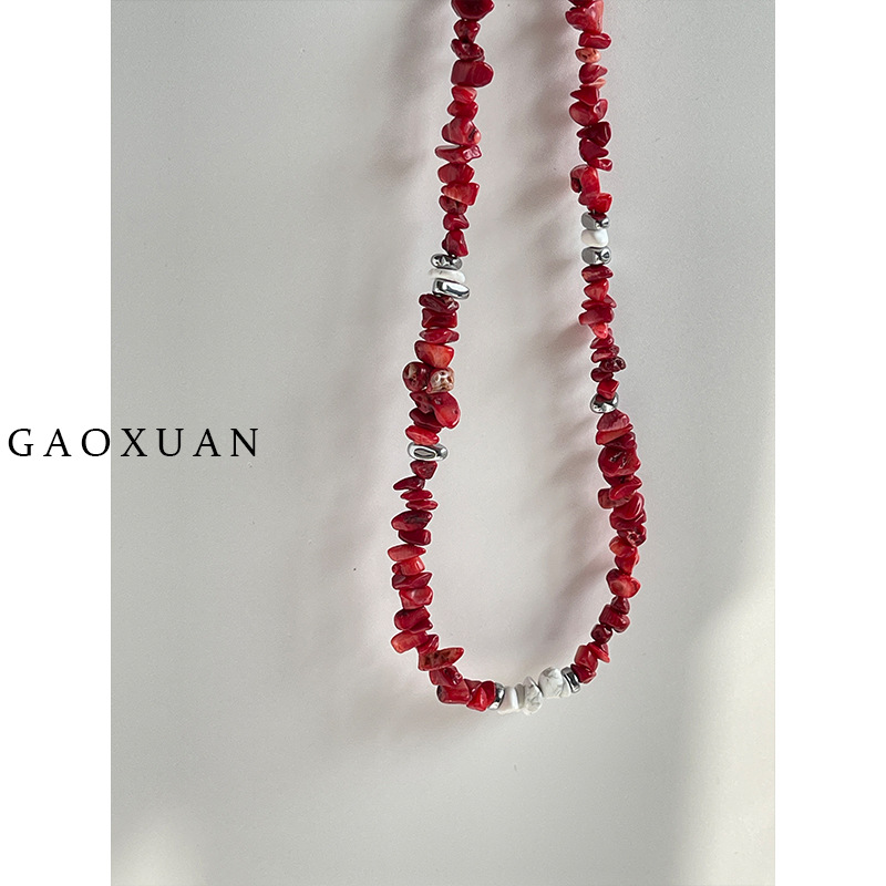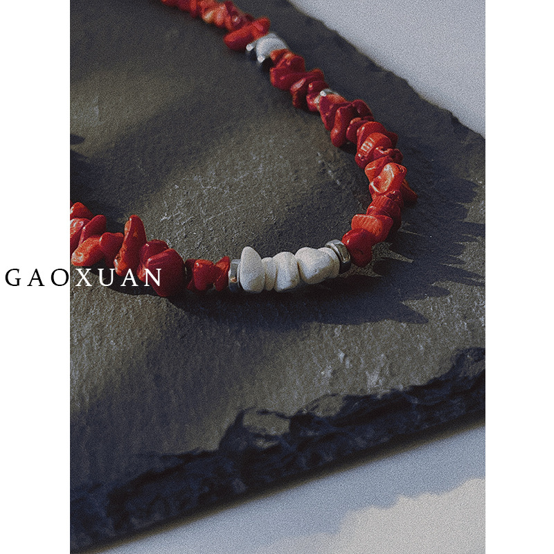 巴洛斯红色不规则天然石项链轻奢小众感百搭锁骨链原创设计