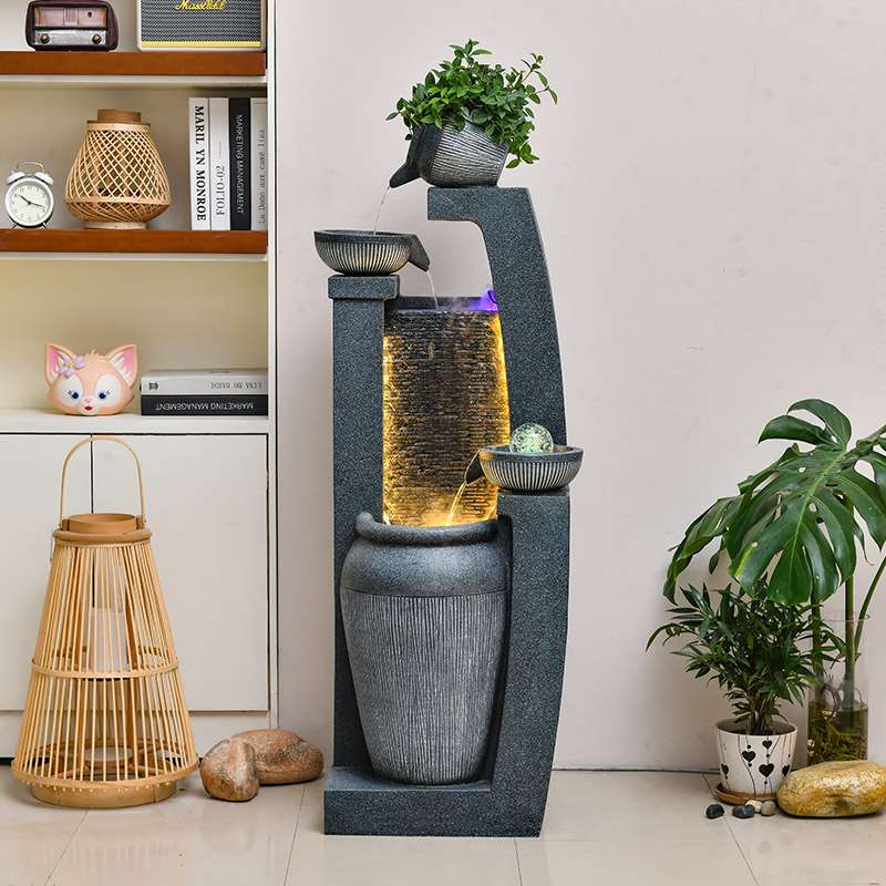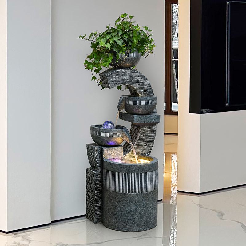 简约轻奢喷泉流水摆件循环落地客厅室内转角装饰玄关开业生财景观