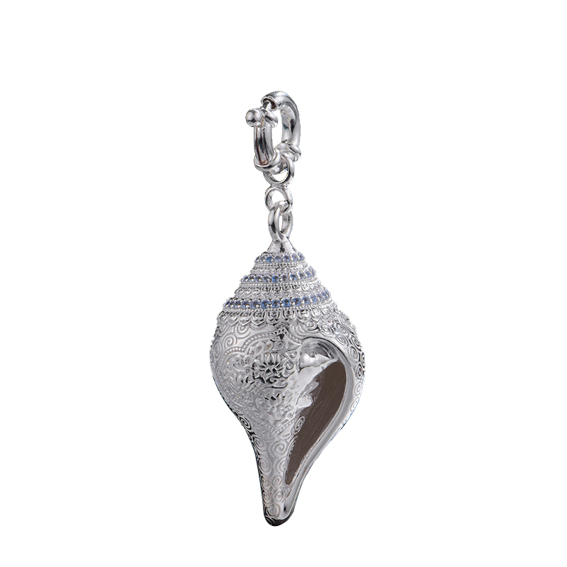 S925纯银镀金吊坠藏式海螺镶宝石项坠吉祥如意雕花男女挂坠卡扣