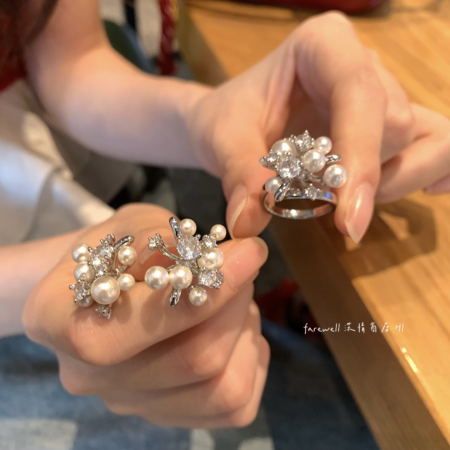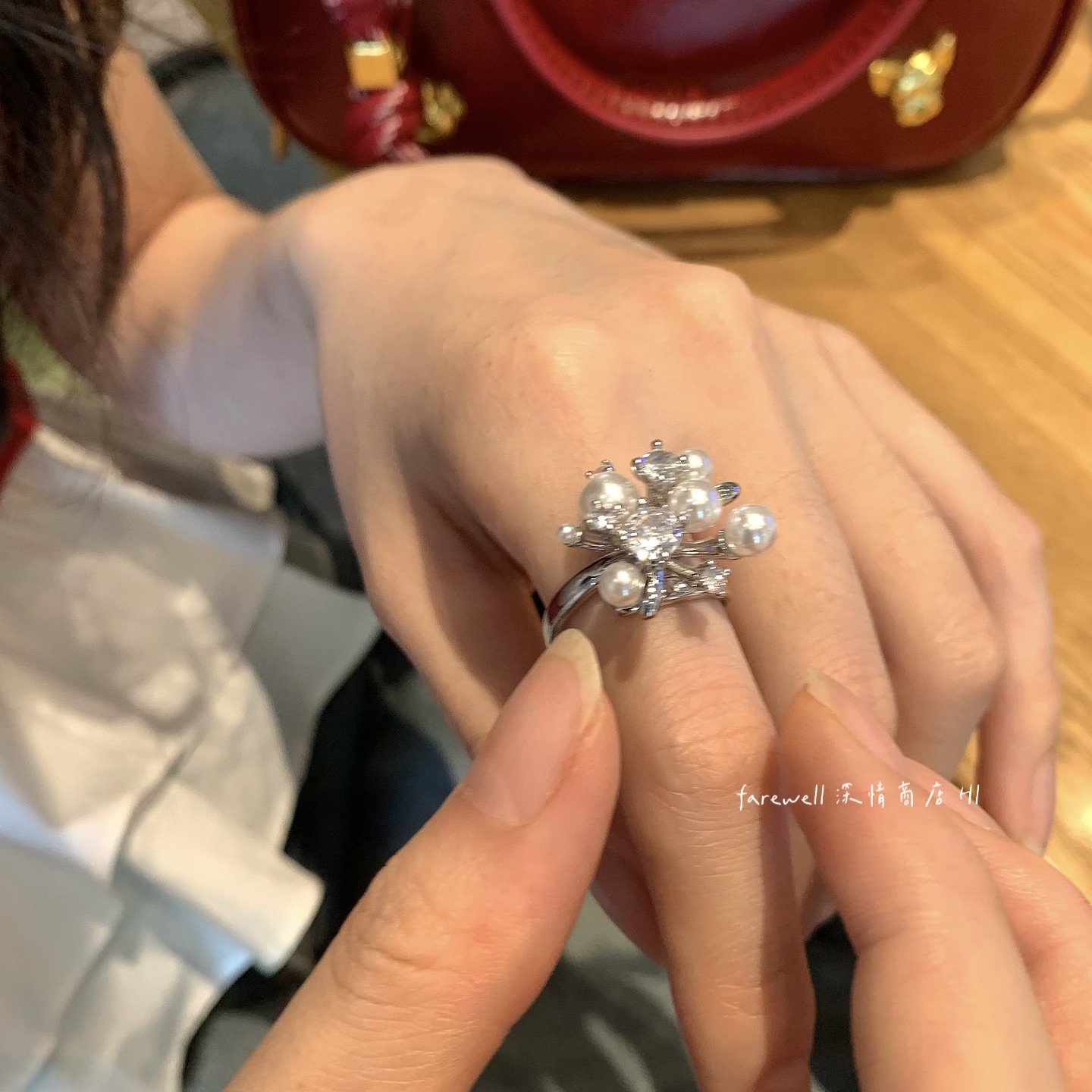 小众设计感花朵耳钉 2025新款法式珍珠锆石耳环 女风独特绝美戒指