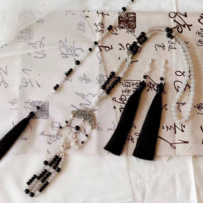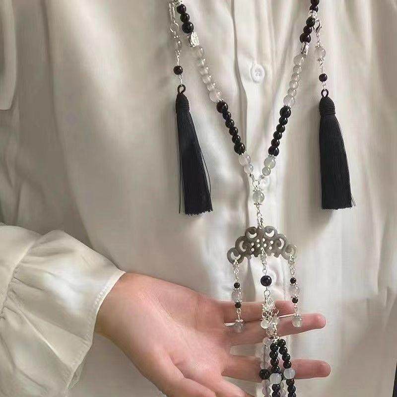 汉服璎珞背云长流苏吊坠项链新中式古风明制压襟国风马面裙配饰品