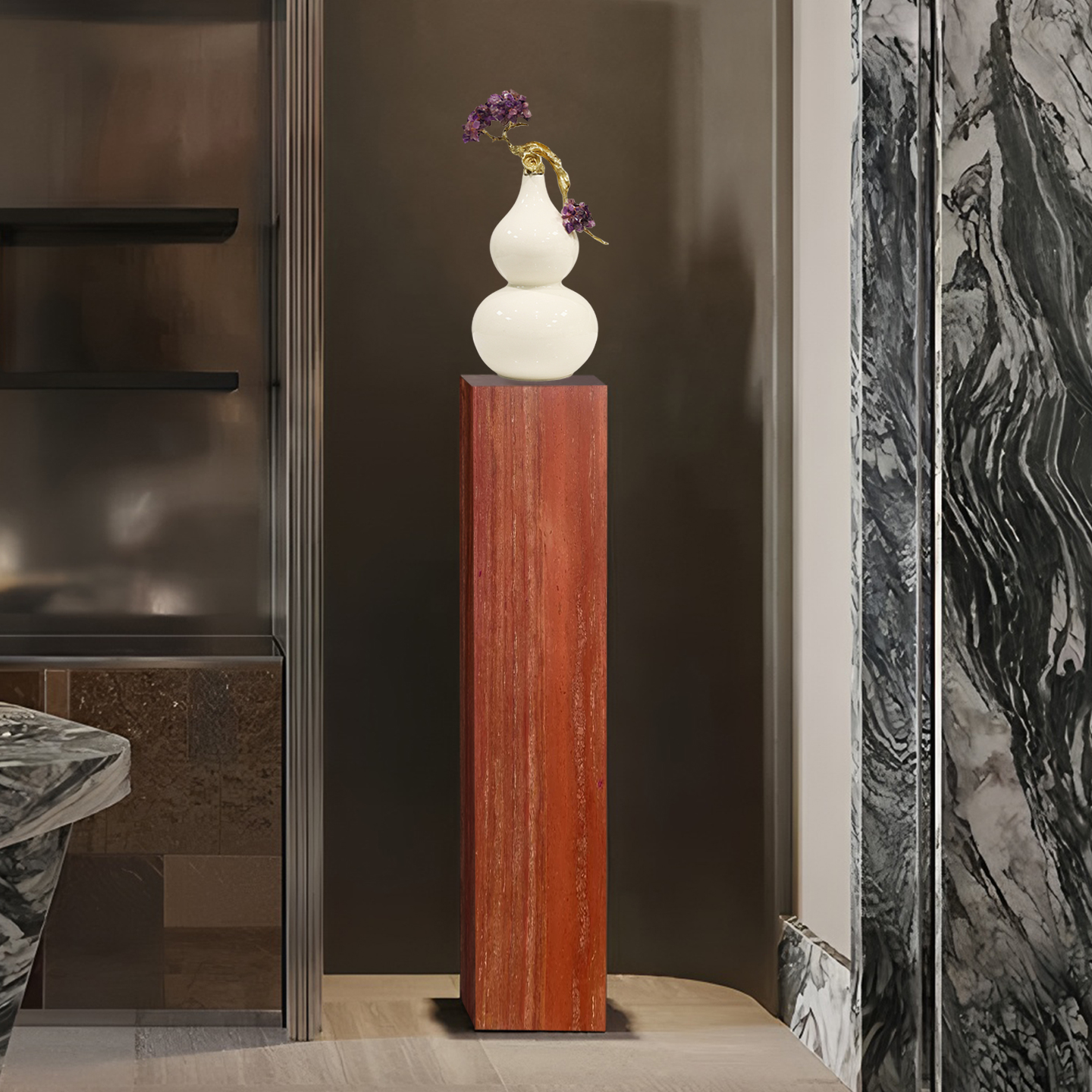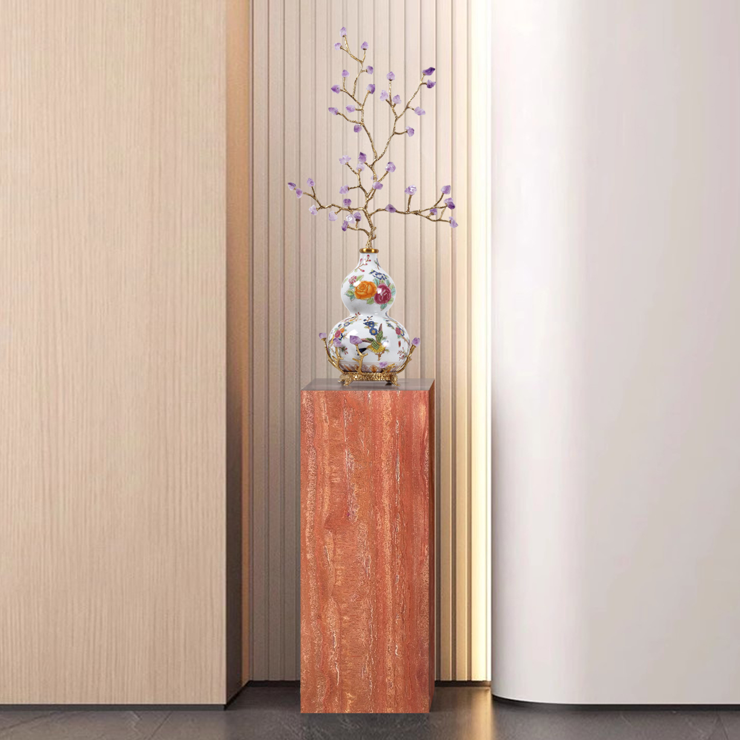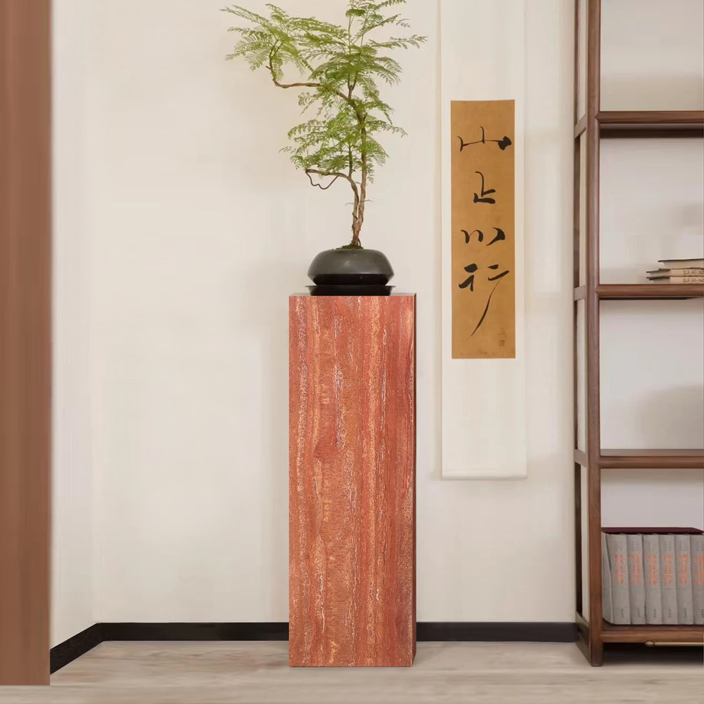 天然红洞石雕塑底座中古风流水台新中式客厅玄关壁龛装饰花架摆台