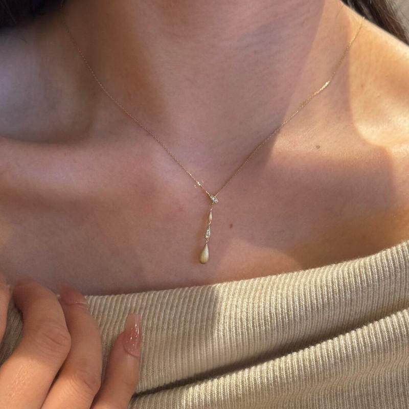 清冷感仿钻水滴项链女极简主义简约极细款锁骨链小众轻奢高级颈链