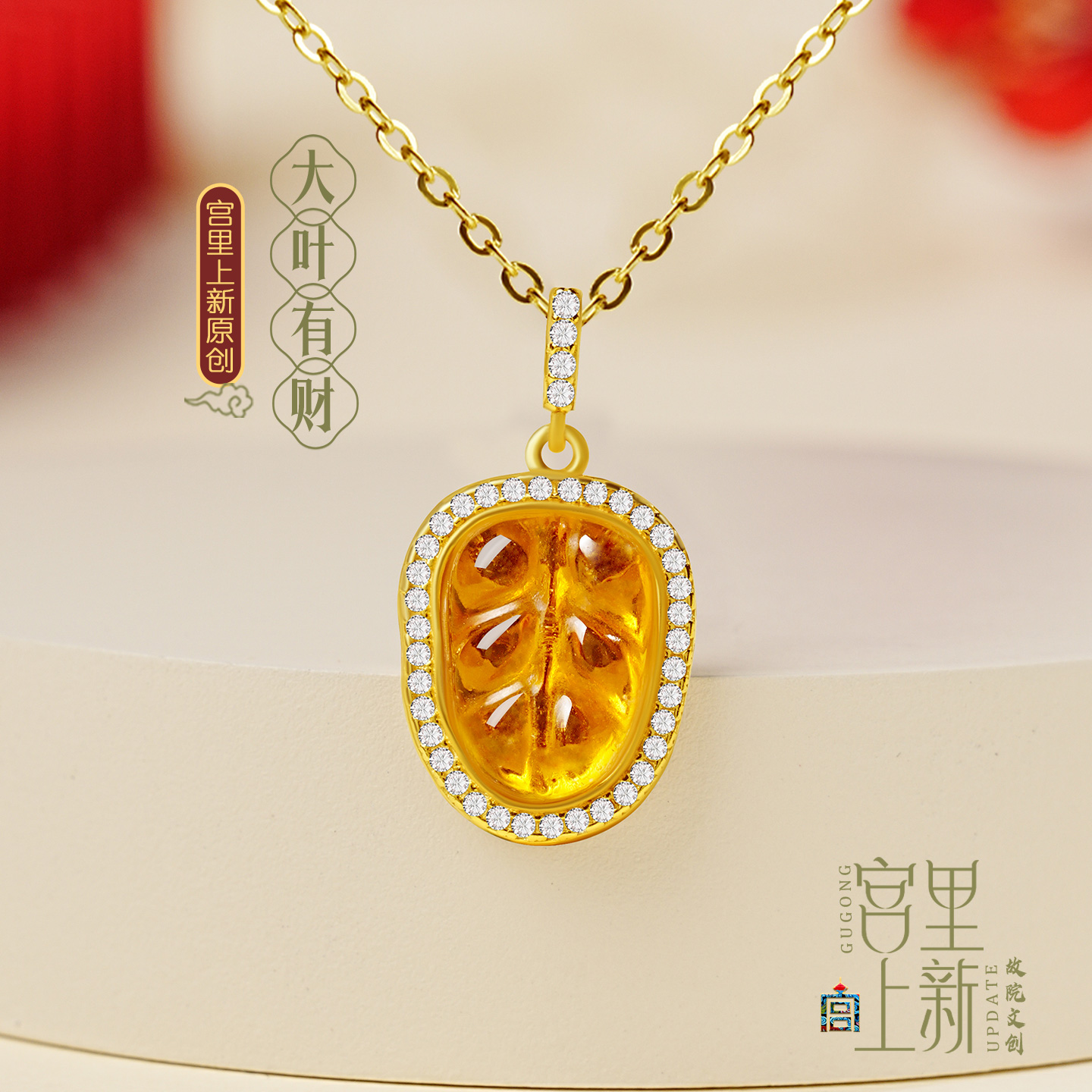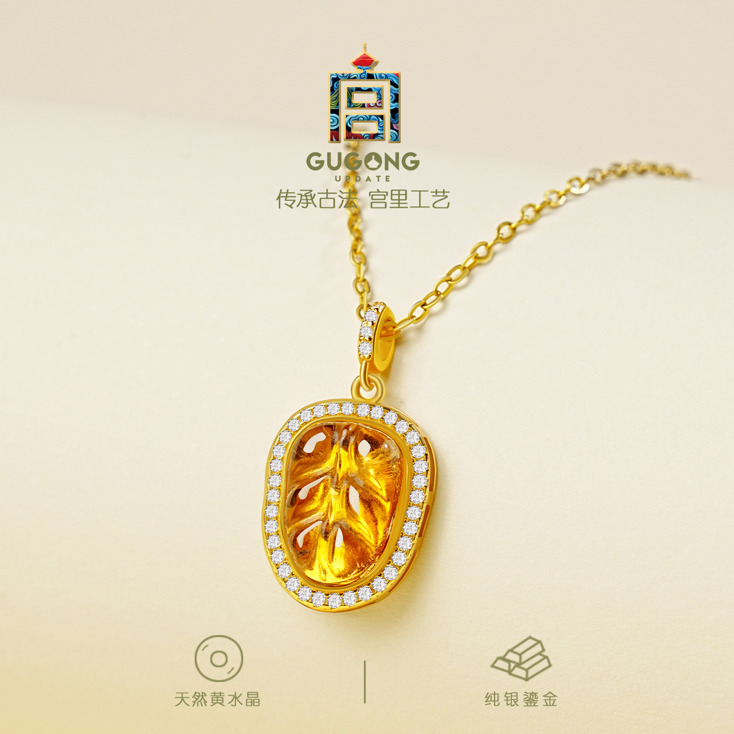 宫里上新黄水晶吊坠女天然叶子黄色项链纯银旺财生日礼物送妈妈