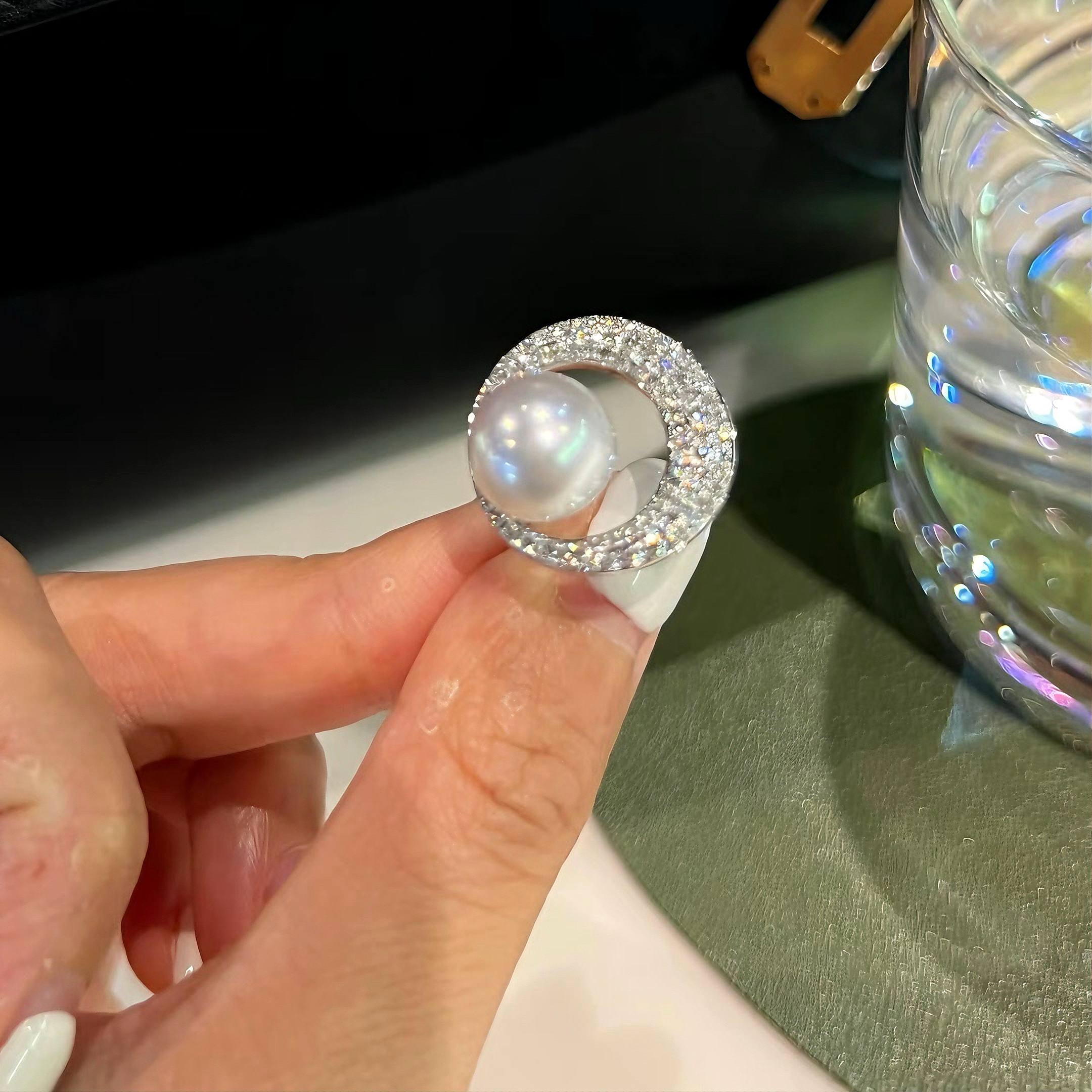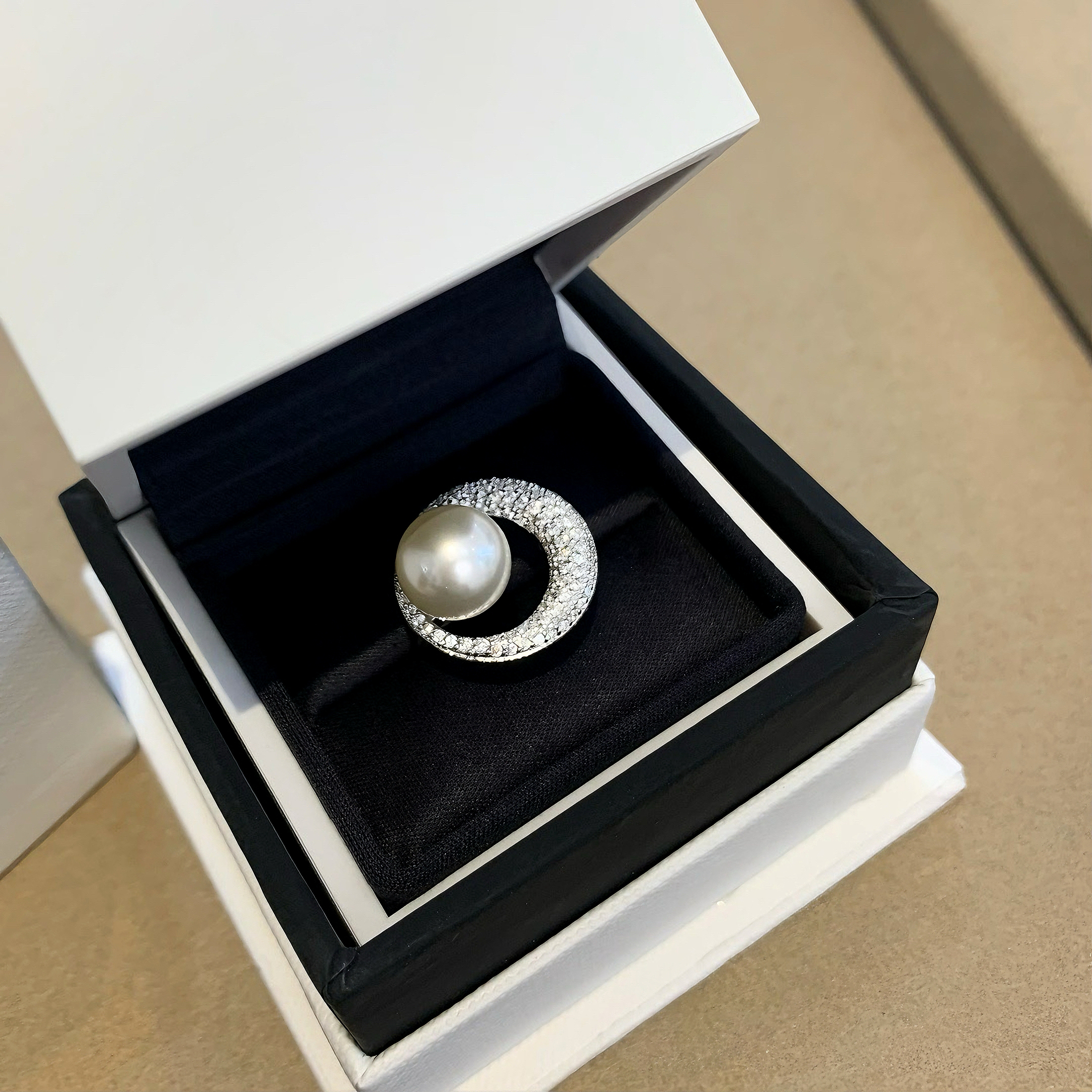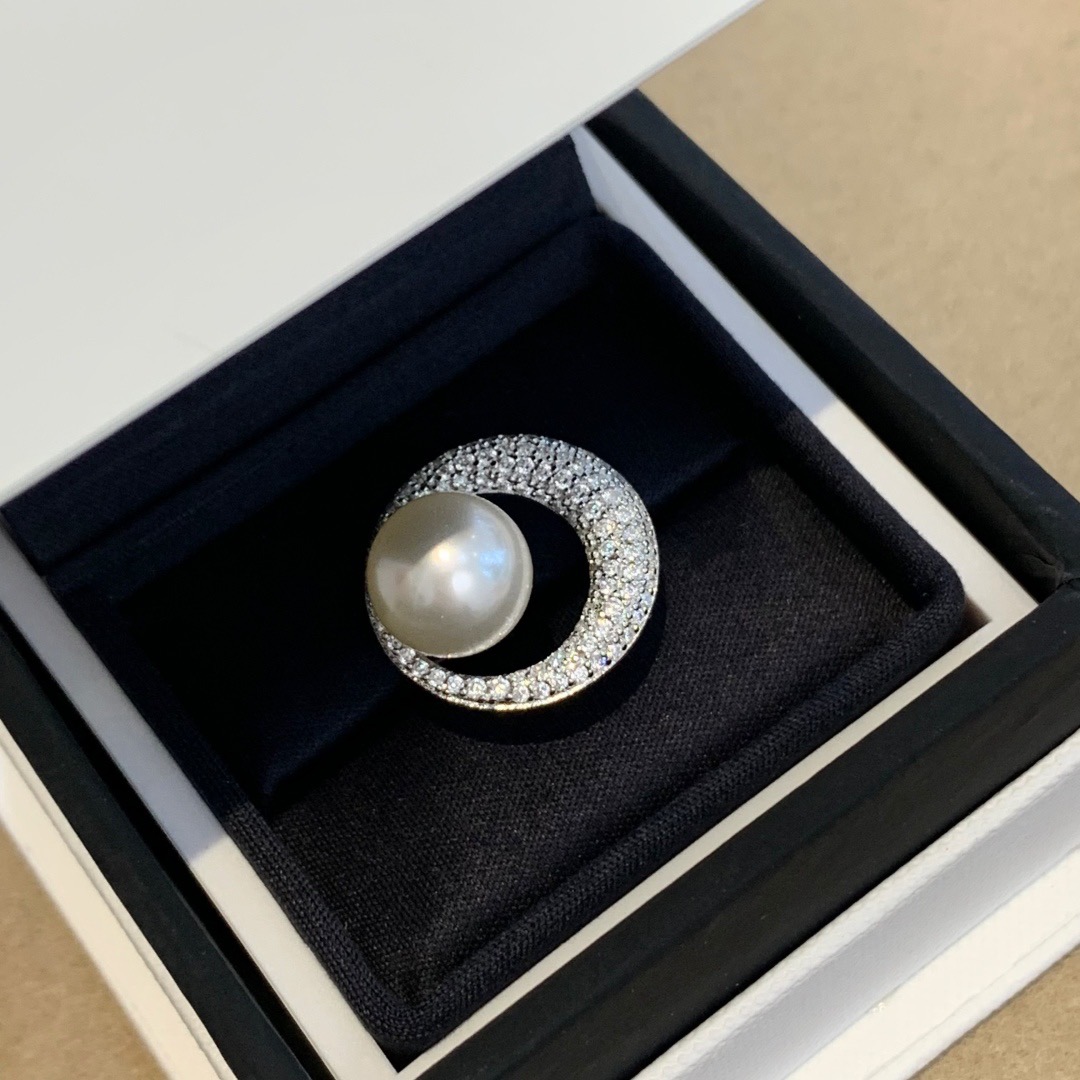 赫本风小众设计珍珠贝珠S925纯银满钻戒指知性优雅精致首饰饰品