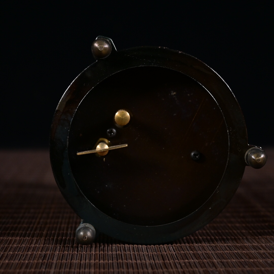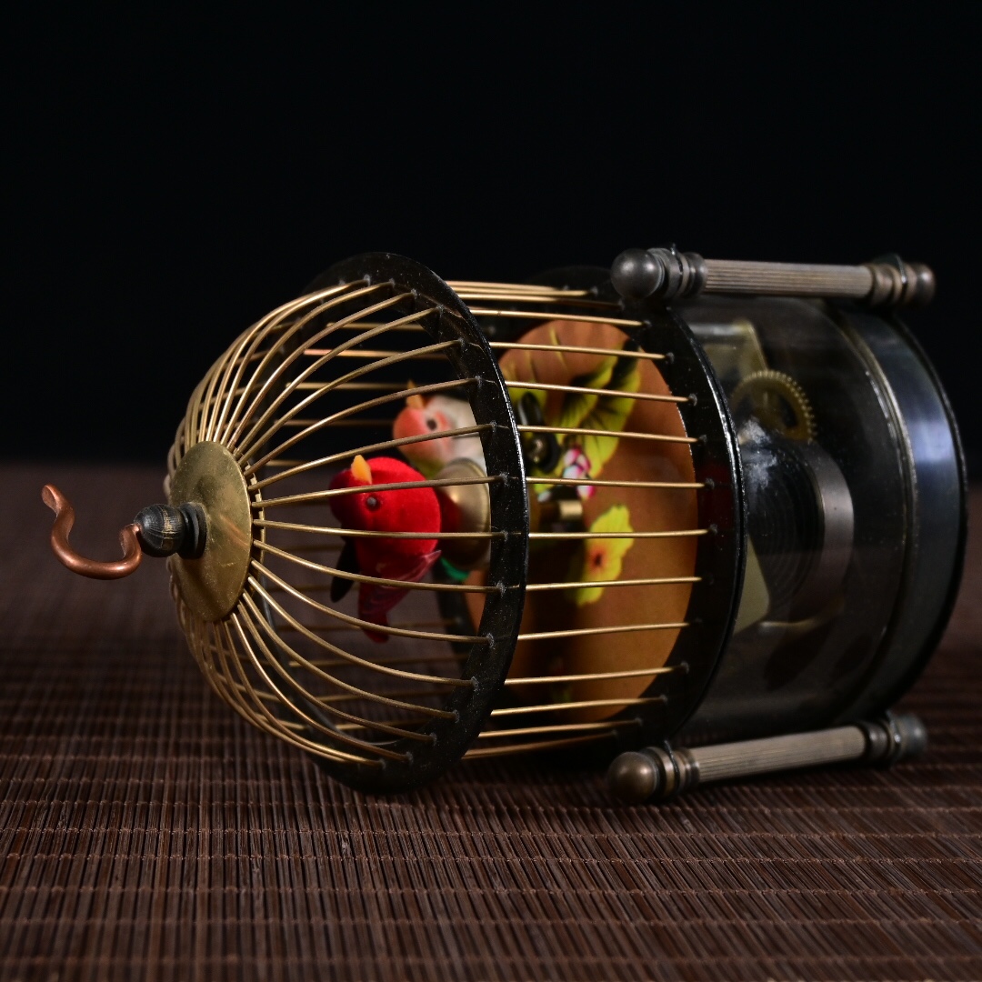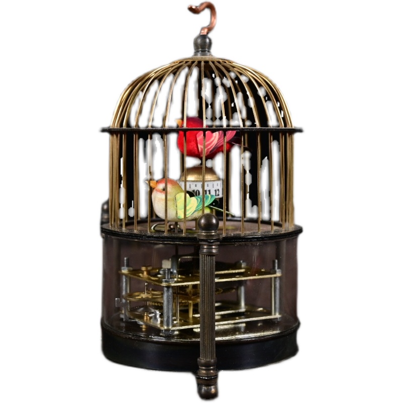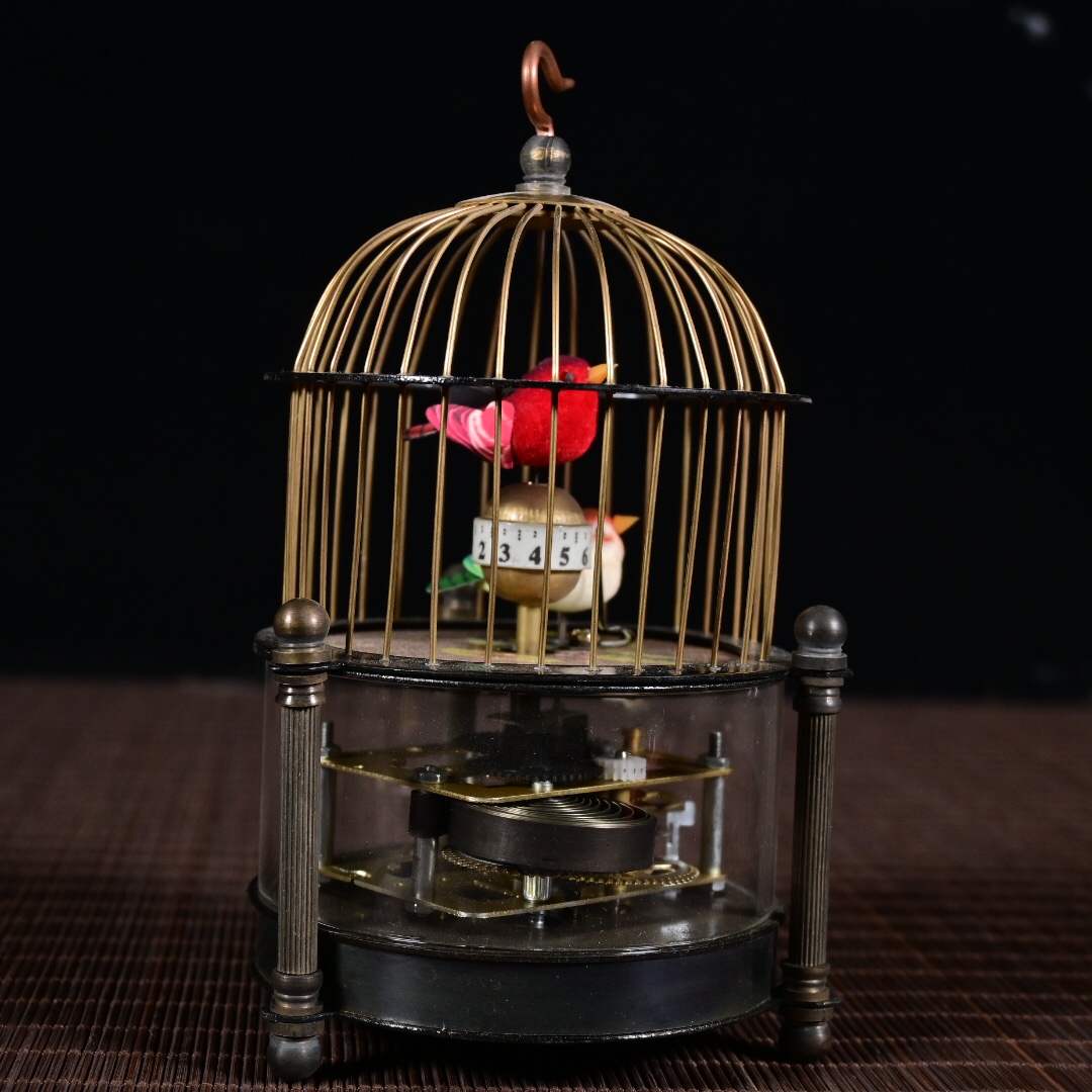 圆双鸟笼机械铜表摆件铜柱机械表座钟摆件机械表古玩纯铜机械表