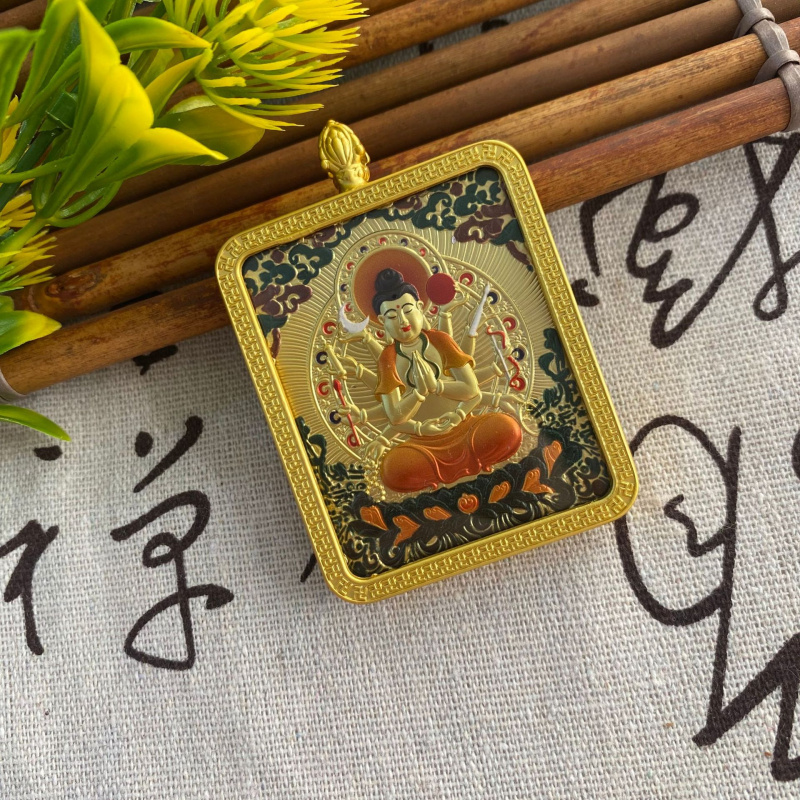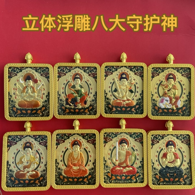 唐卡吊坠嘎乌盒藏传画盒立体浮雕八大守护神项链男女款随身送挂绳